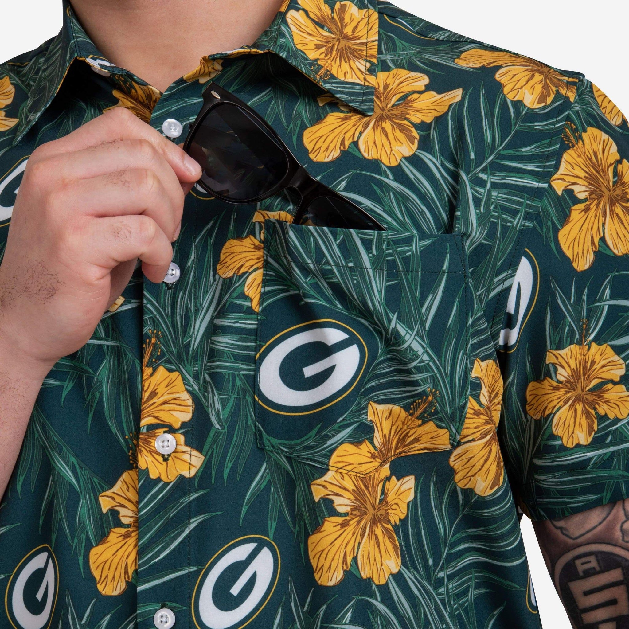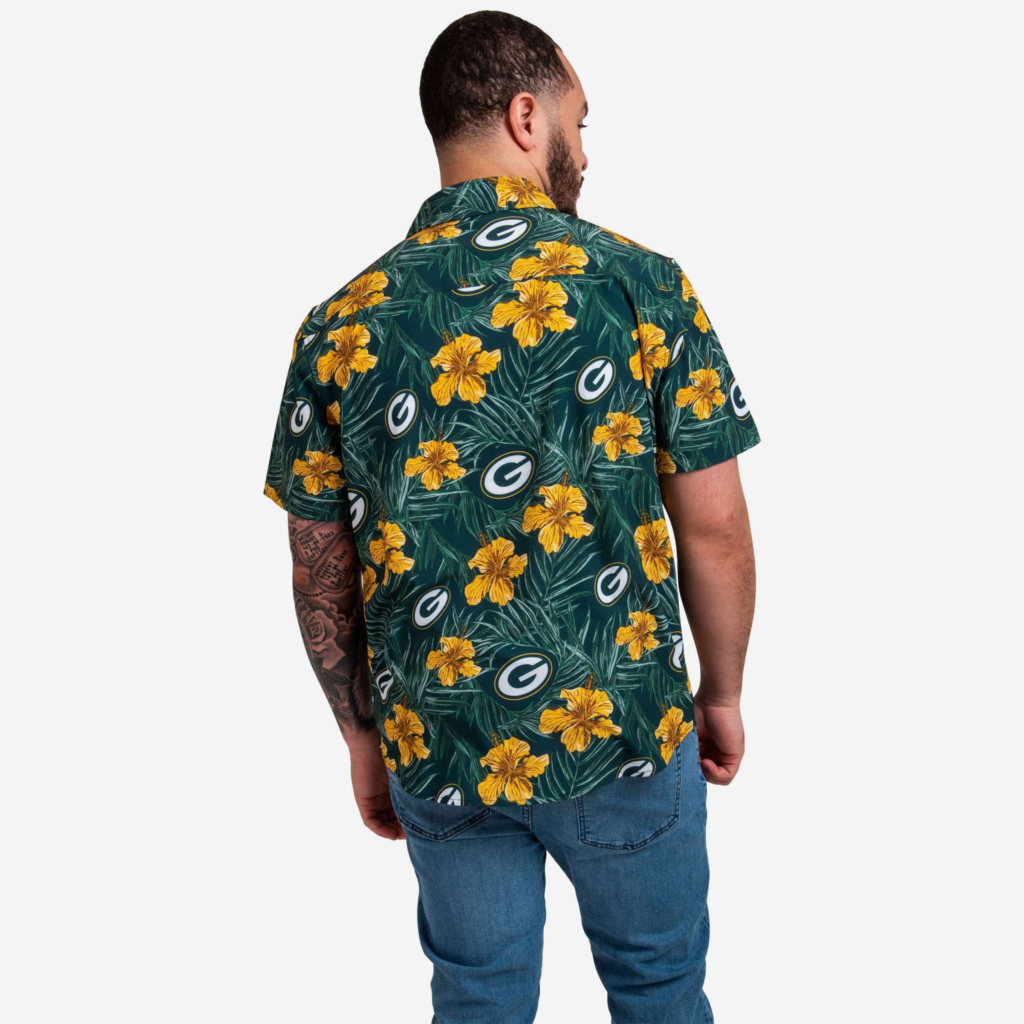 Whether you're sipping a cold, delicious beverage on the beach, or just lounging on the couch watching the game on TV, this Green Bay Packers Hibiscus Button Up Shirt is the perfect way to show off your fan fashion sense at literally any occasion.