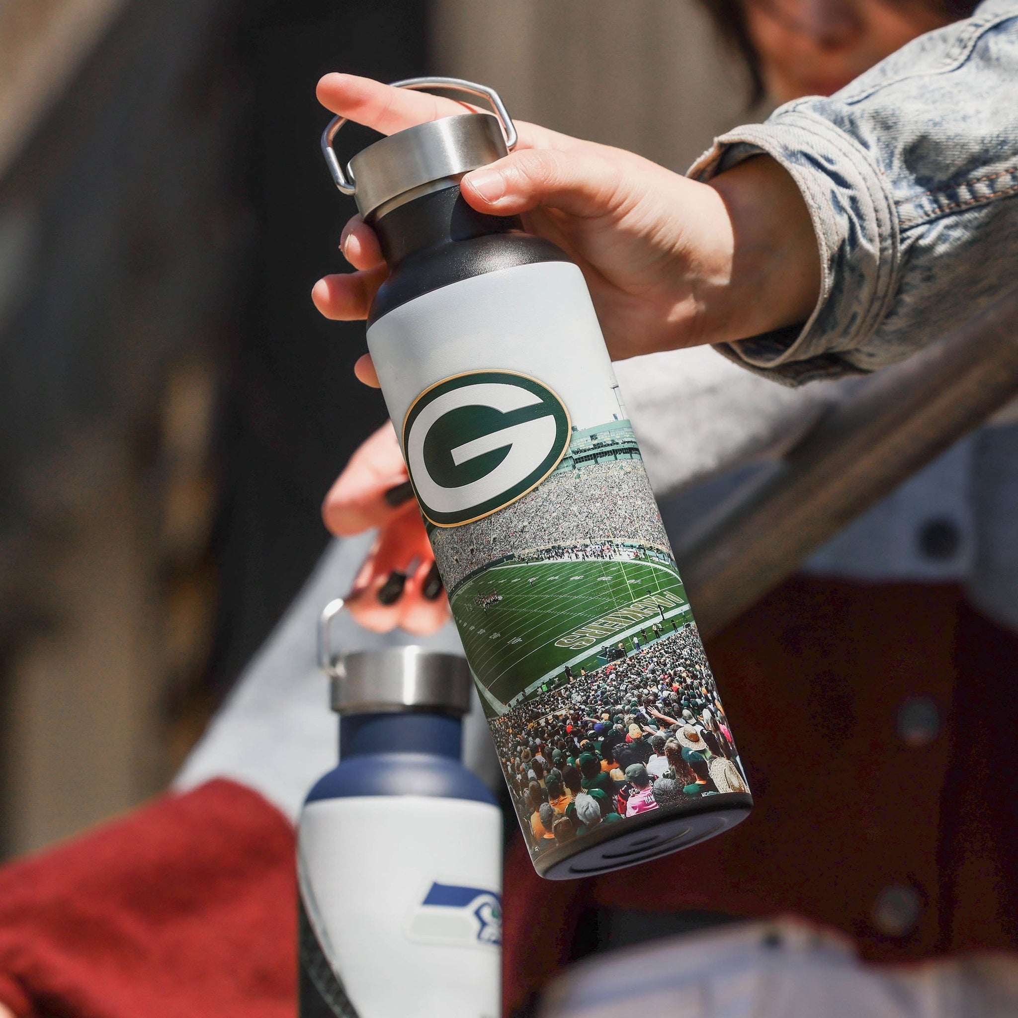 You know what they say - There's no place like home. Now you can take your home field with you wherever your team spirit takes you by sipping your favorite beverage from this Green Bay Packers Home Field Hydration 25 oz. Bottle!