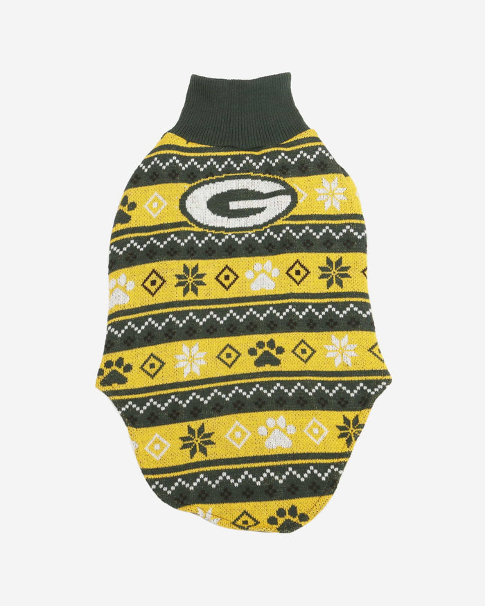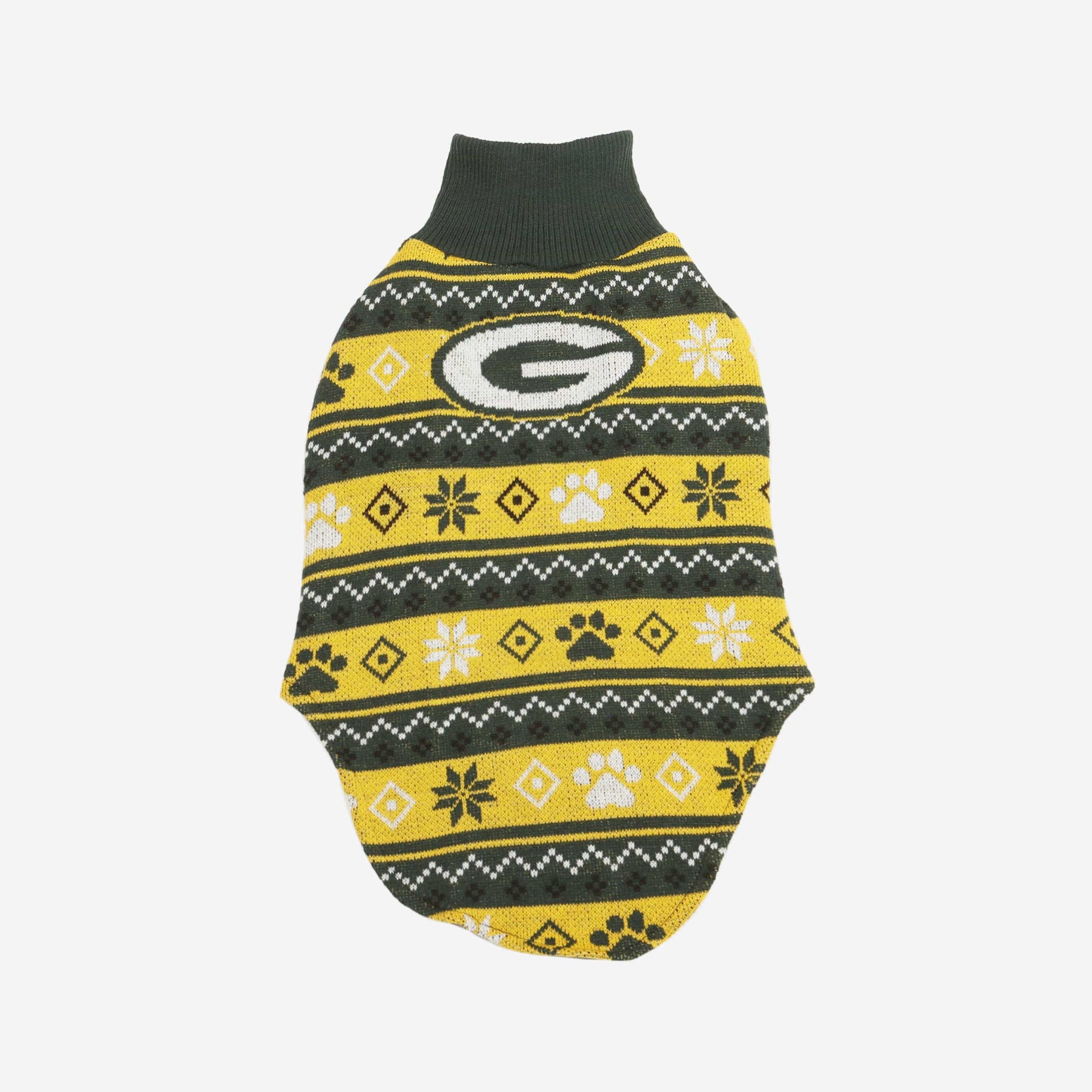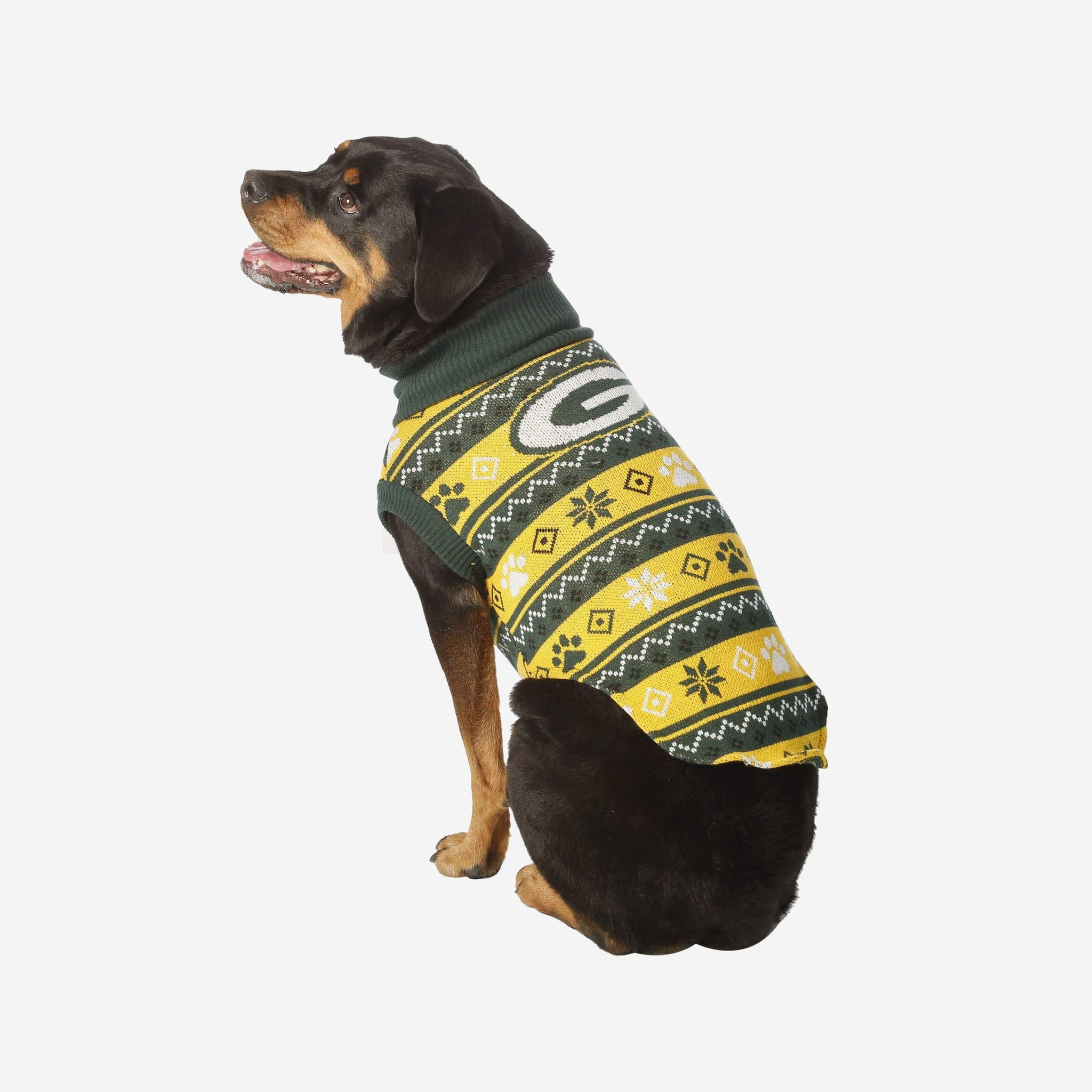 Show off your pet's holiday spirit with this dog sweater! Your good boy (or girl) will love this Green Bay Packers Knitted Holiday Dog Sweater so much, they'll be saying "woof bark awooo" (that's "thank you" in pup language). Don't forget to match your canine's sweater with a set of matching holiday pajamas!