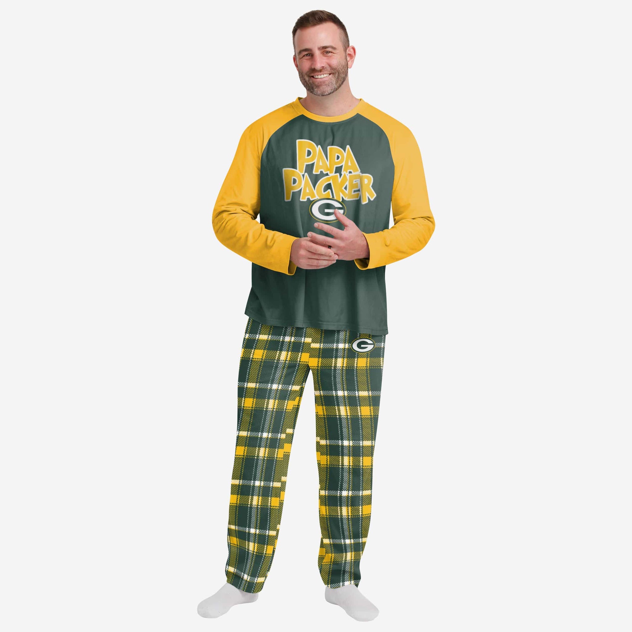 Get some matching family pajamas and dress to impress this holiday season! You won't want to miss these men's team pajamas! These men's PJ's are comfortable and show off your team spirit in the form of some sweet men's jammies. Introducing the Green Bay Packers Plaid Family Holiday Pajamas! Don't forget to take your holiday photo with the whole family wearing matching Christmas pajamas!