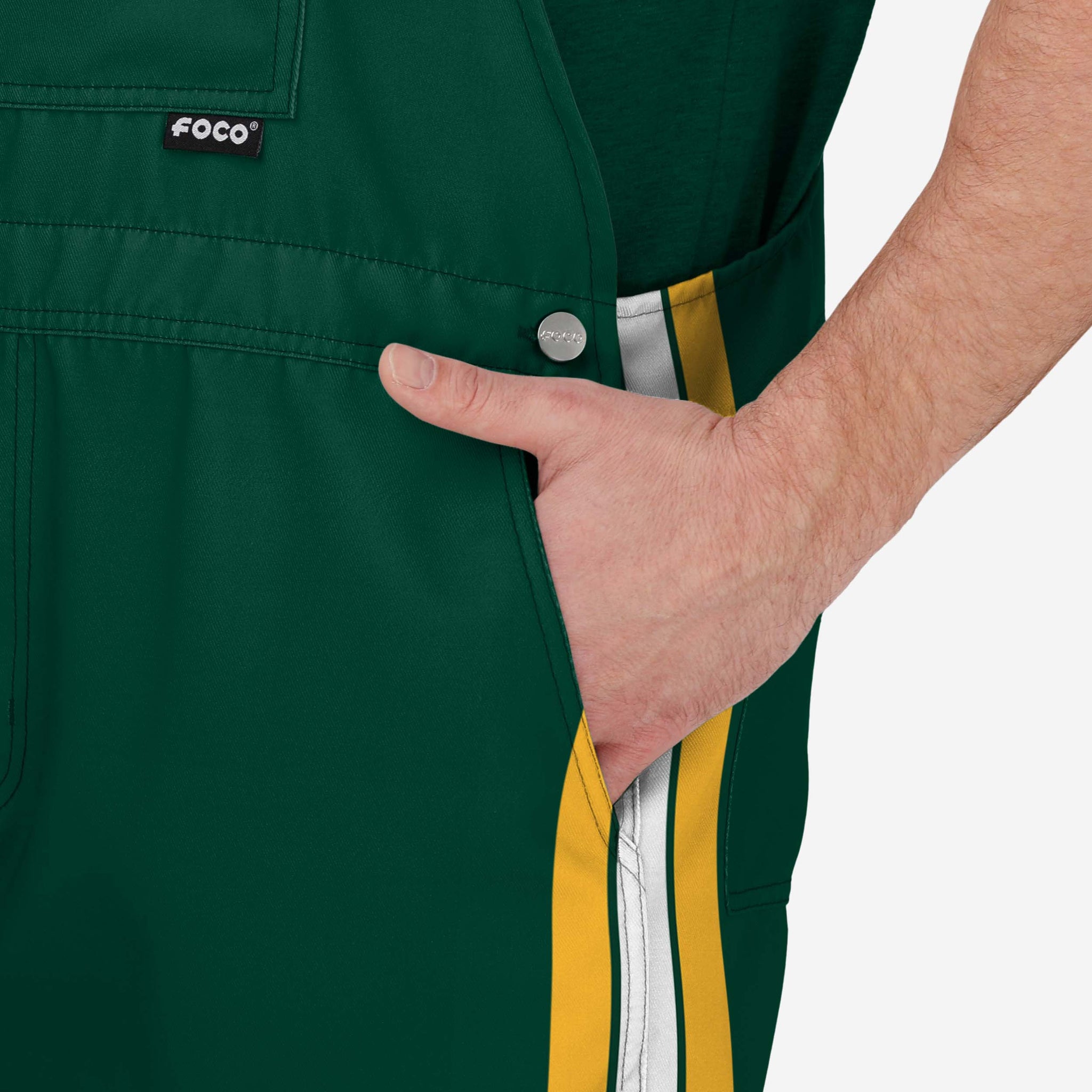 Green Bay Packers Mens Team Stripe Bib Shortalls FOCO - FOCO.com