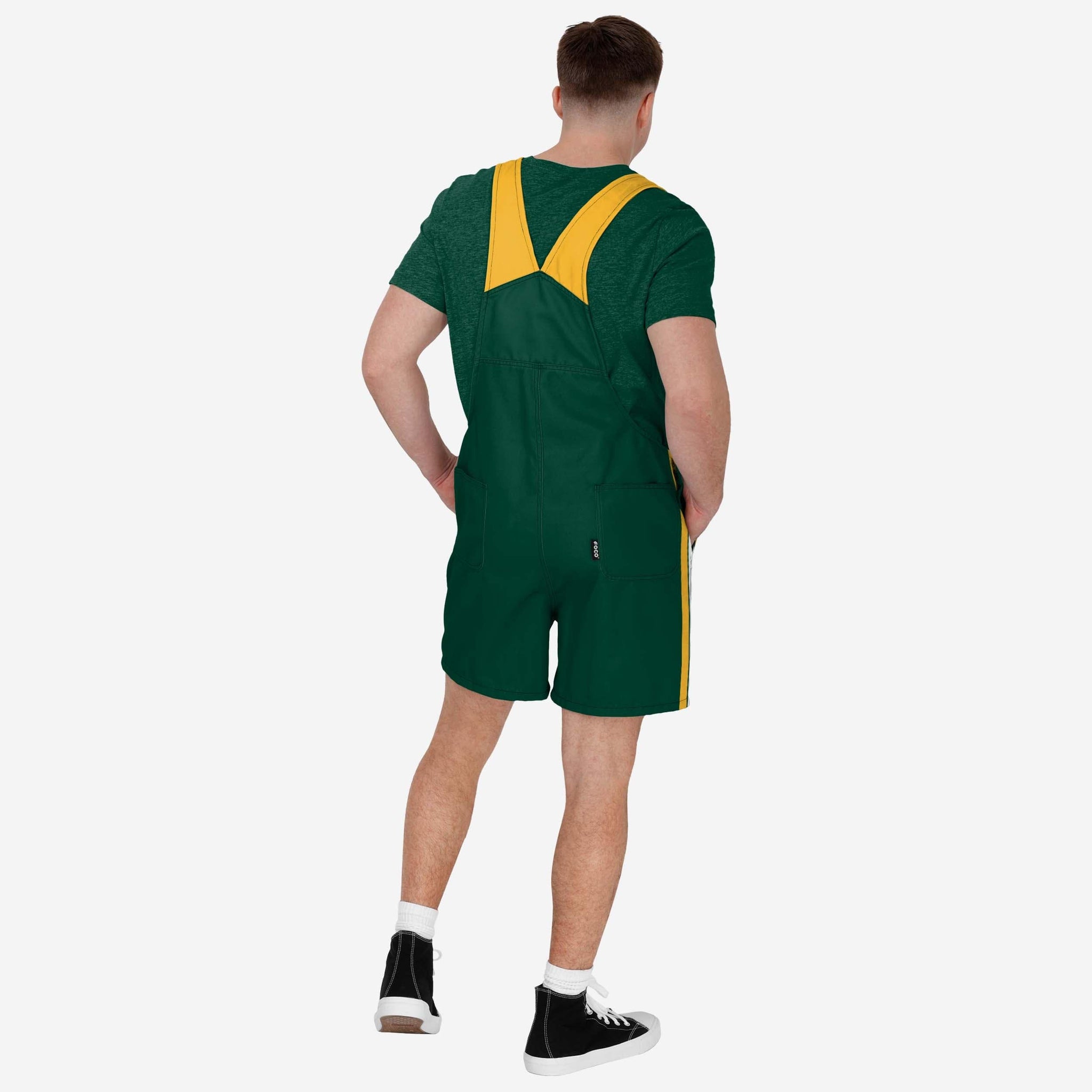• All-over team-colored design: These shortalls are covered in the official Green Bay Packers colors, so you can show your team spirit with pride.