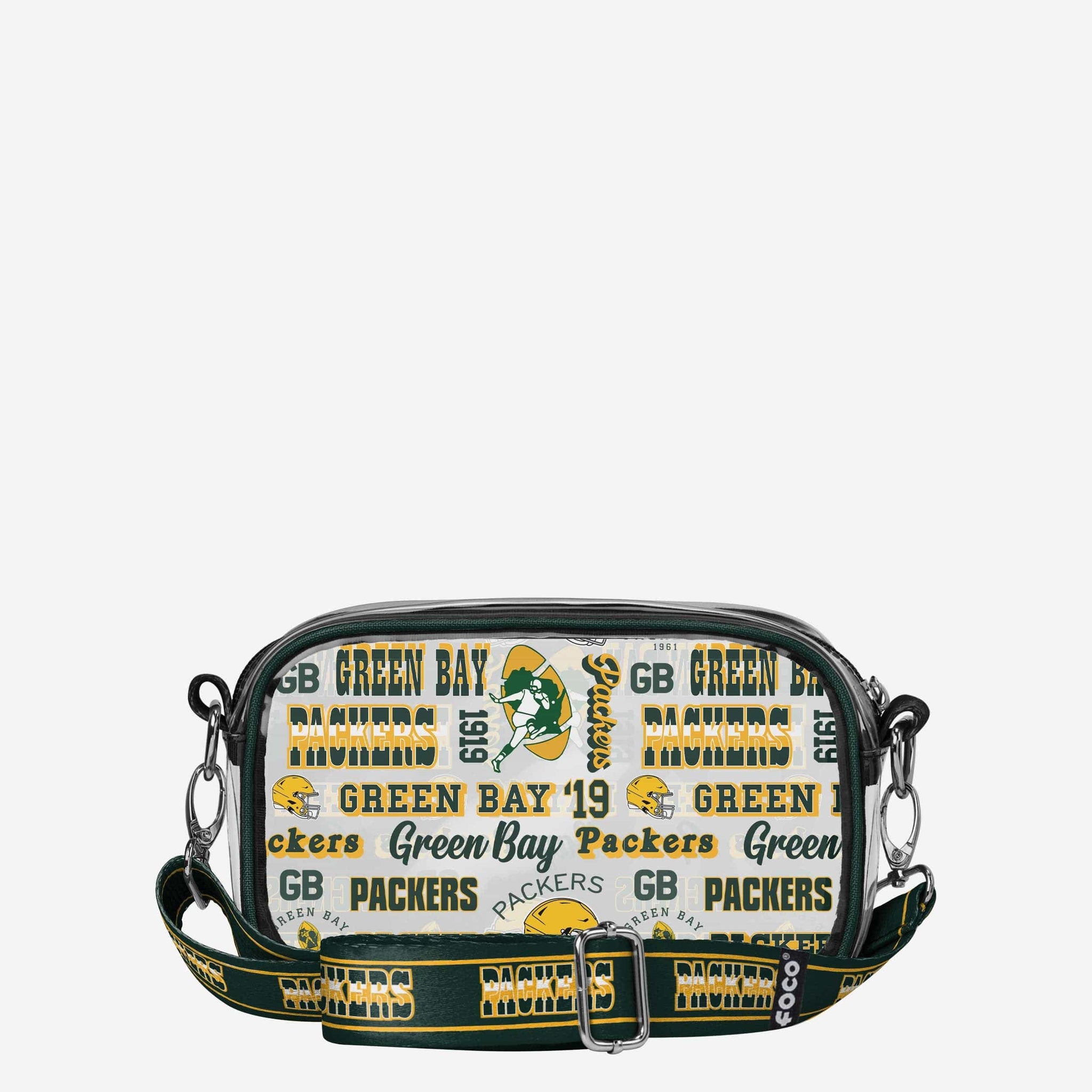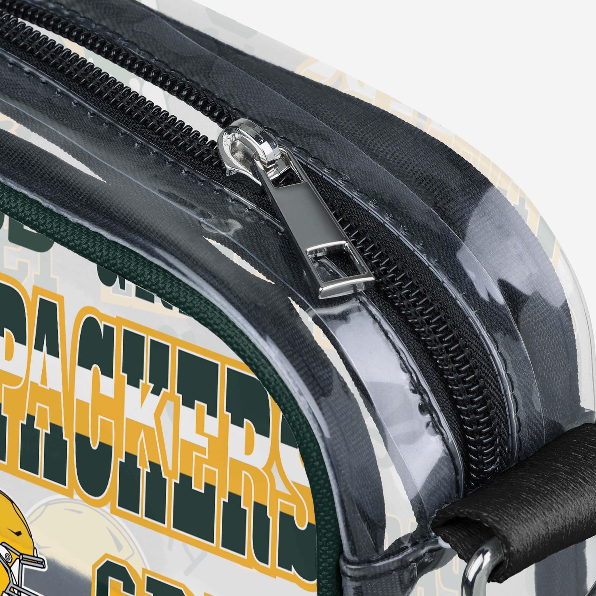 Over your shoulder and off to the game. Whether you're running errands on the town or running the tailgate in the parking lot, this Green Bay Packers Repeat Retro Print Clear Crossbody Bag is the perfect way to carry the team like never before.