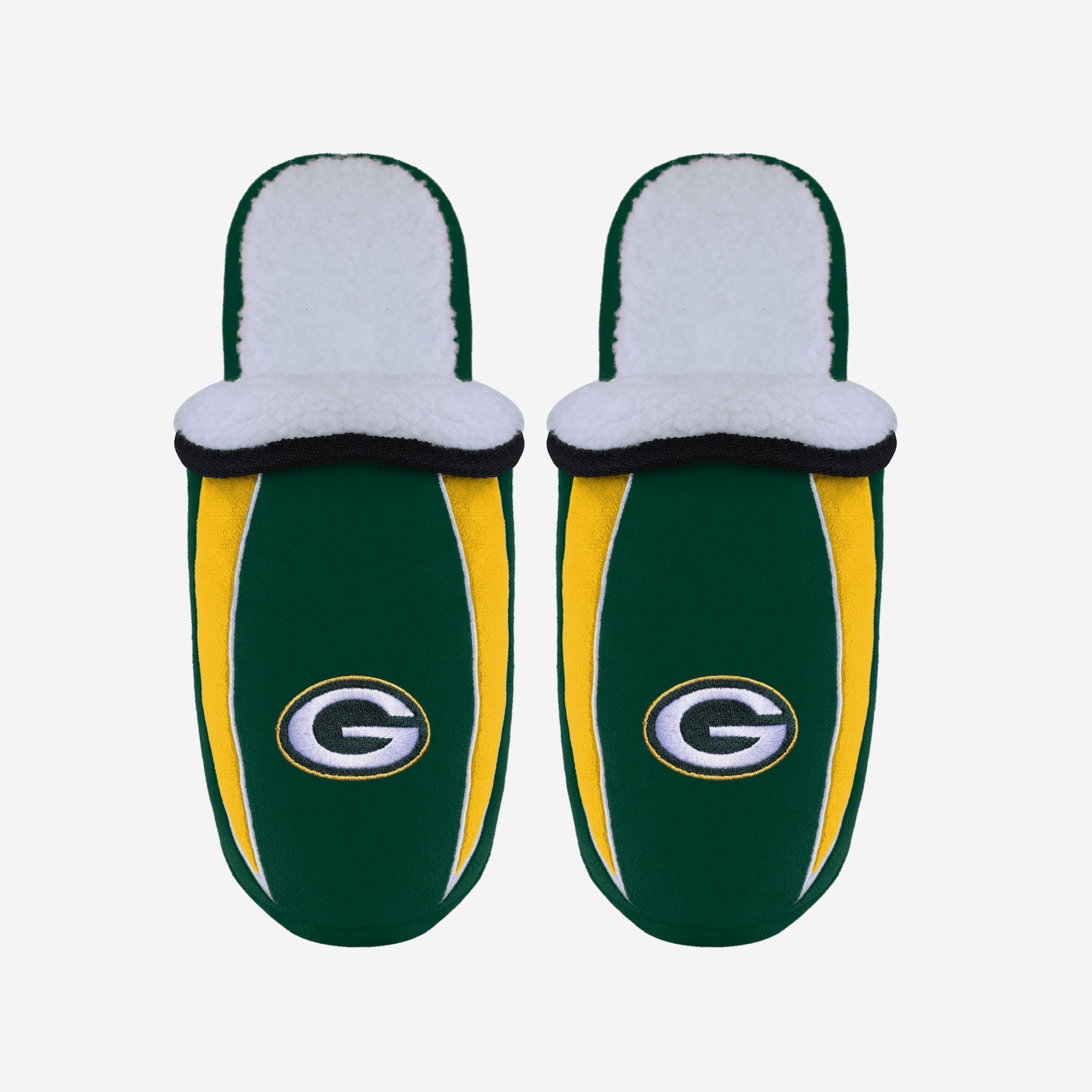 Kicking back, putting your feet up and watching the big game on the big screen in the fancave is great. You know what's even greater? Doing all that while wearing these Green Bay Packers Men's Sherpa Slide Slippers. Step into some serious fan comfort.
