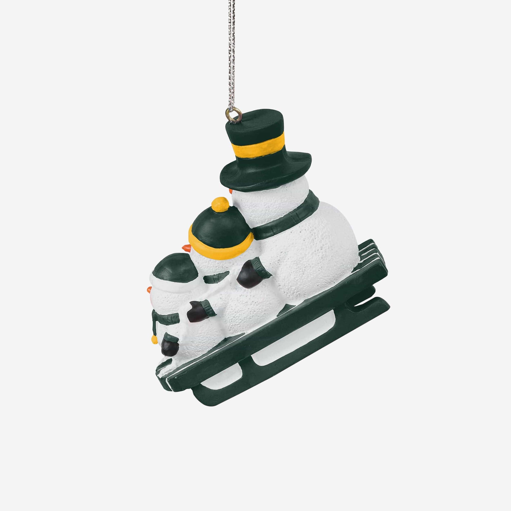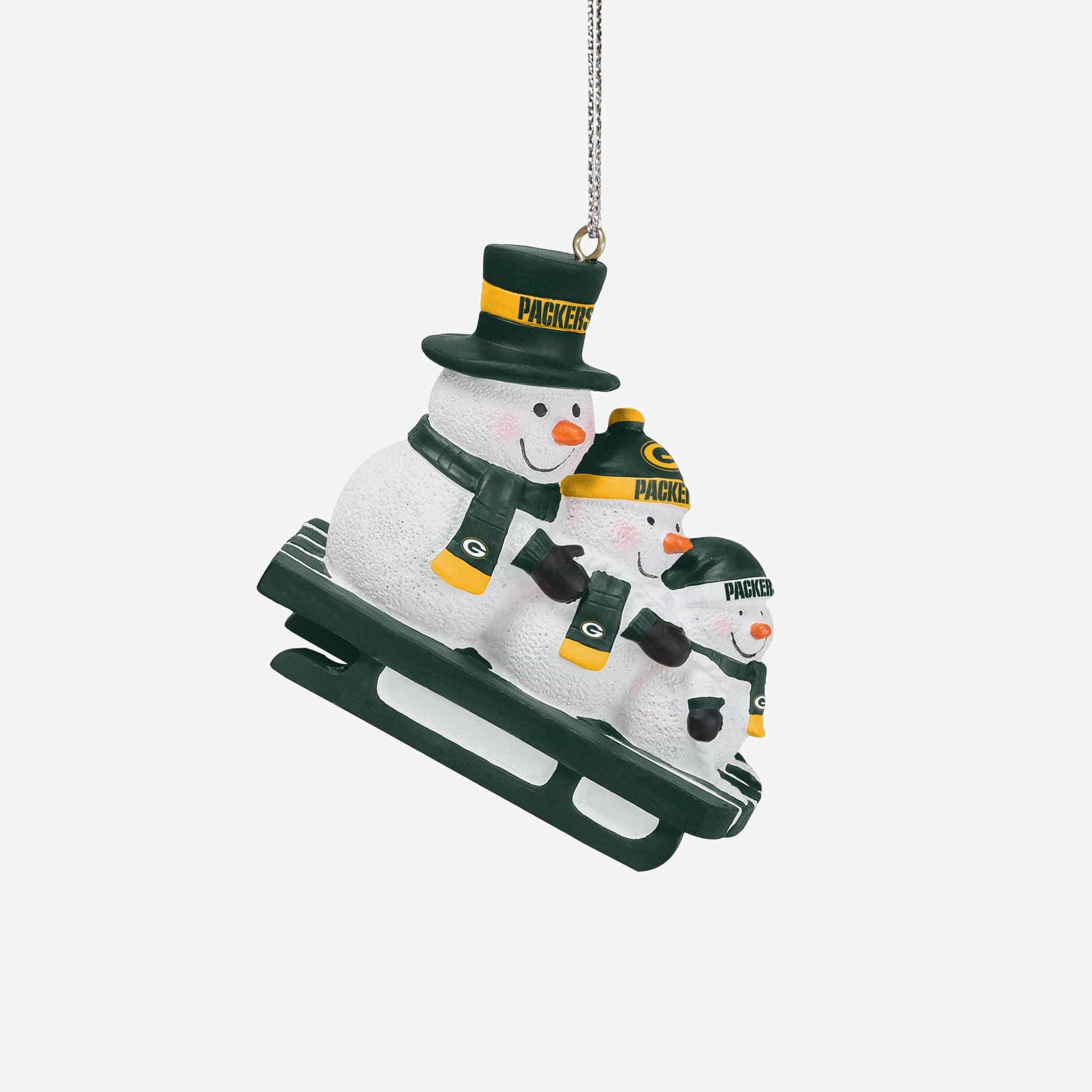 Meet three snowman friends that won't melt when you bring them inside! Introducing the Green Bay Packers Sledding Snowmen Ornament!