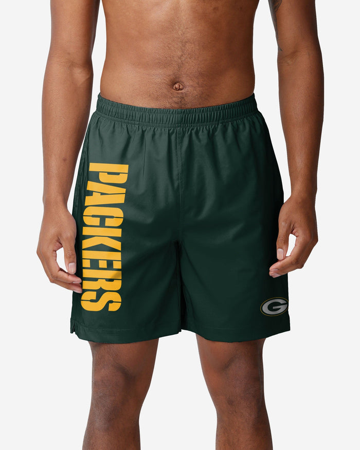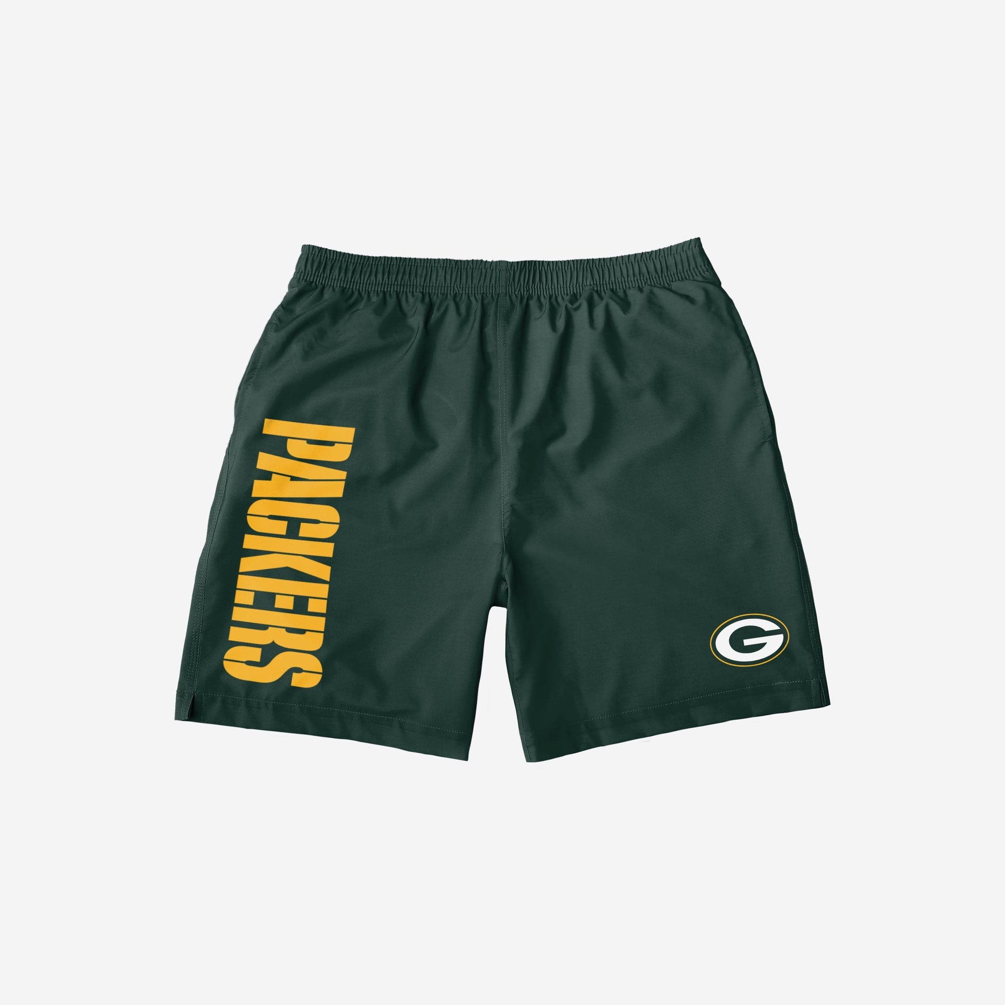 When you're getting your cardio in doing some laps while wearing these Green Bay Packers Big Wordmark Traditional Swimming Trunks, you'll be the coolest fan in the pool.