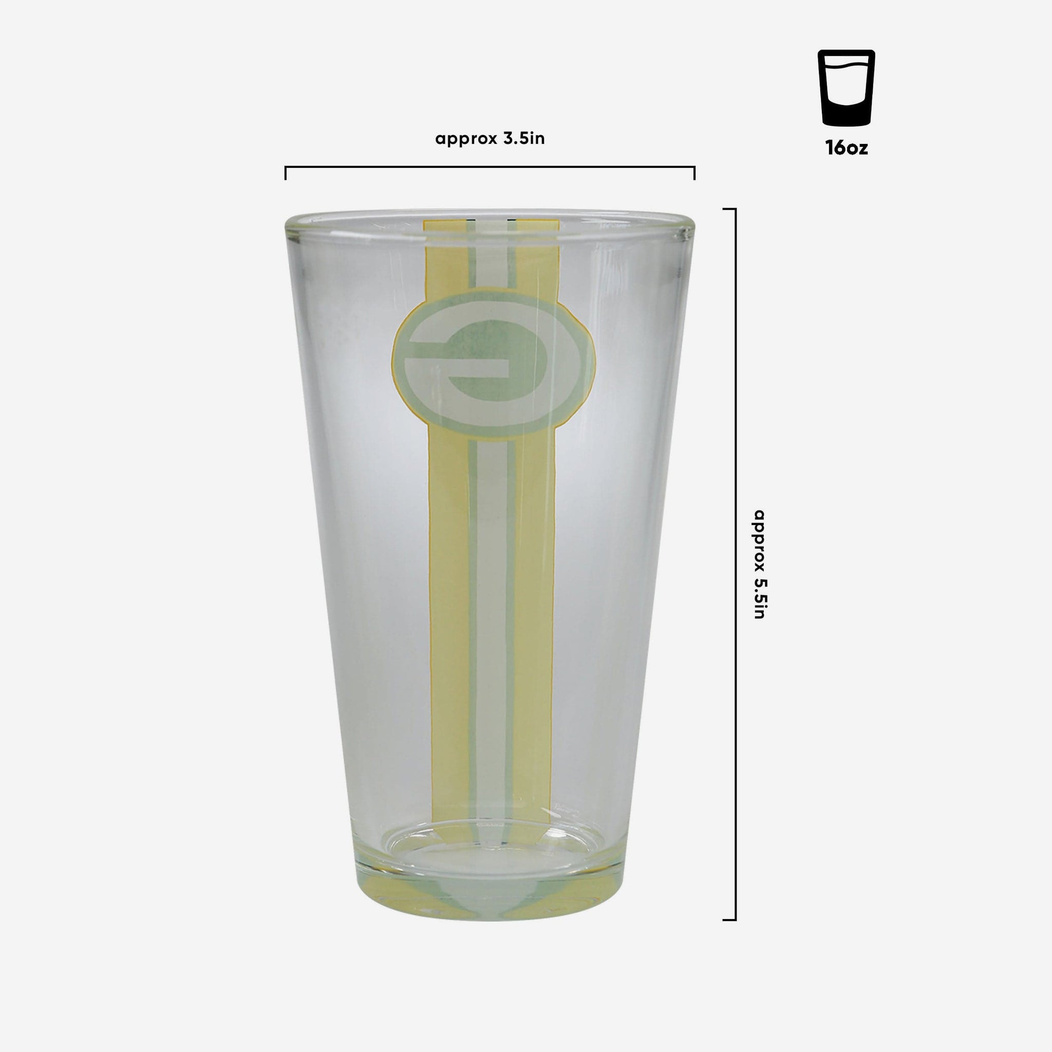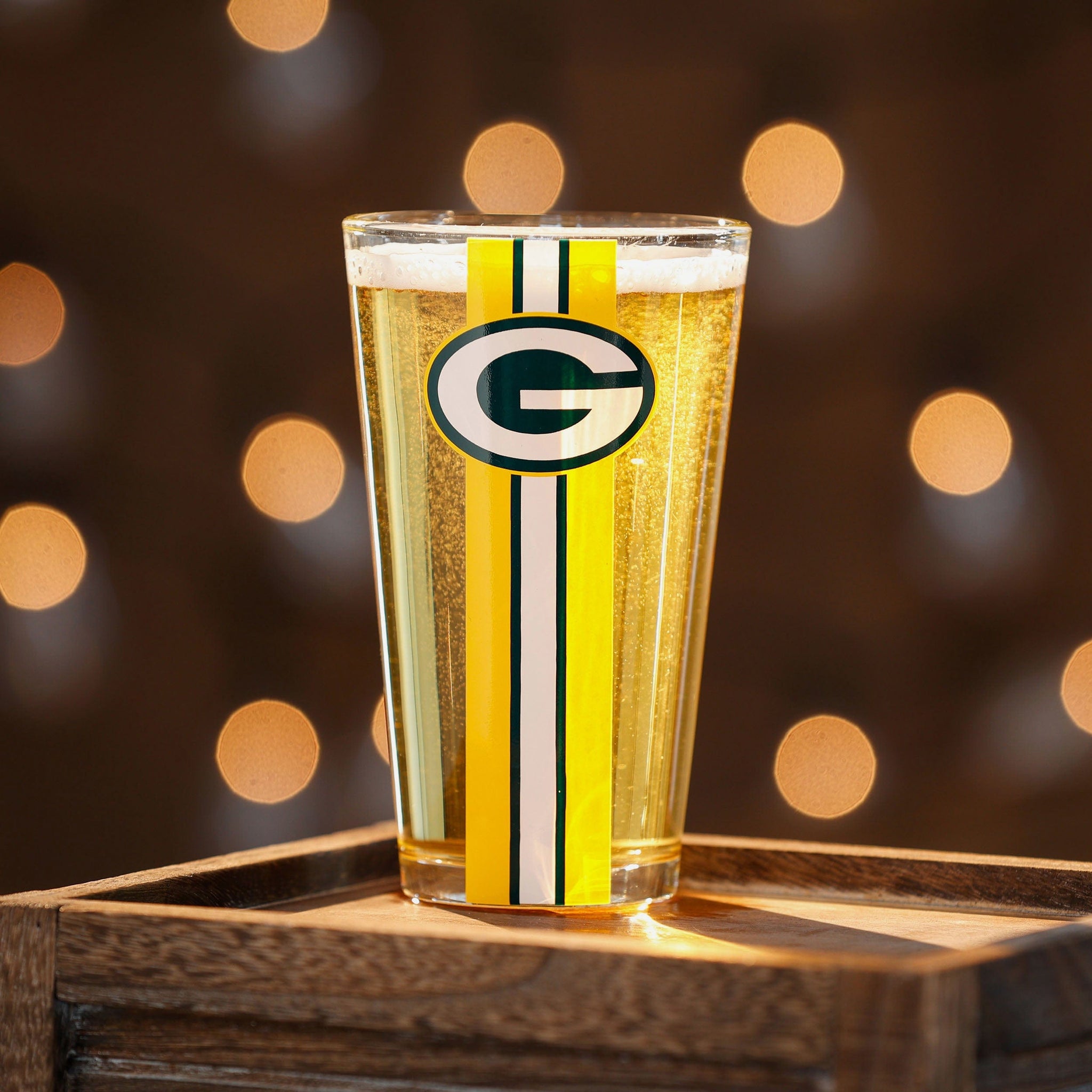 You're a glass half full type of fan. So are we. Now, let's raise that glass and get ready for victory after victory with this Green Bay Packers Team Stripe Pint Glass.