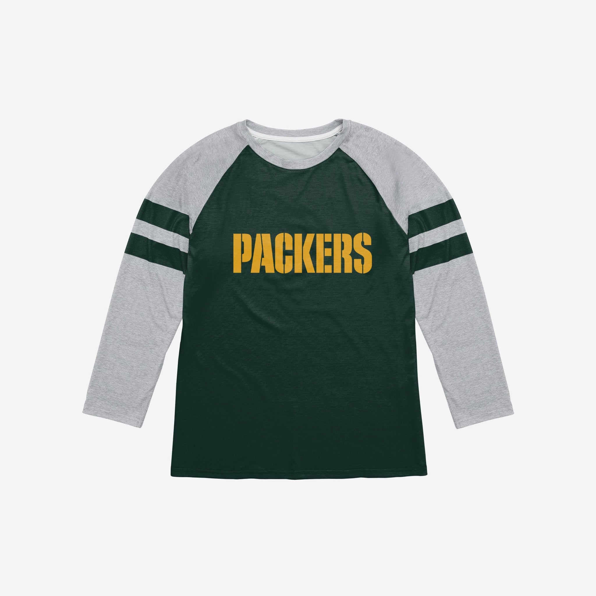 Green Bay Packers Team Stripe Wordmark Raglan T-Shirt FOCO S - FOCO.com