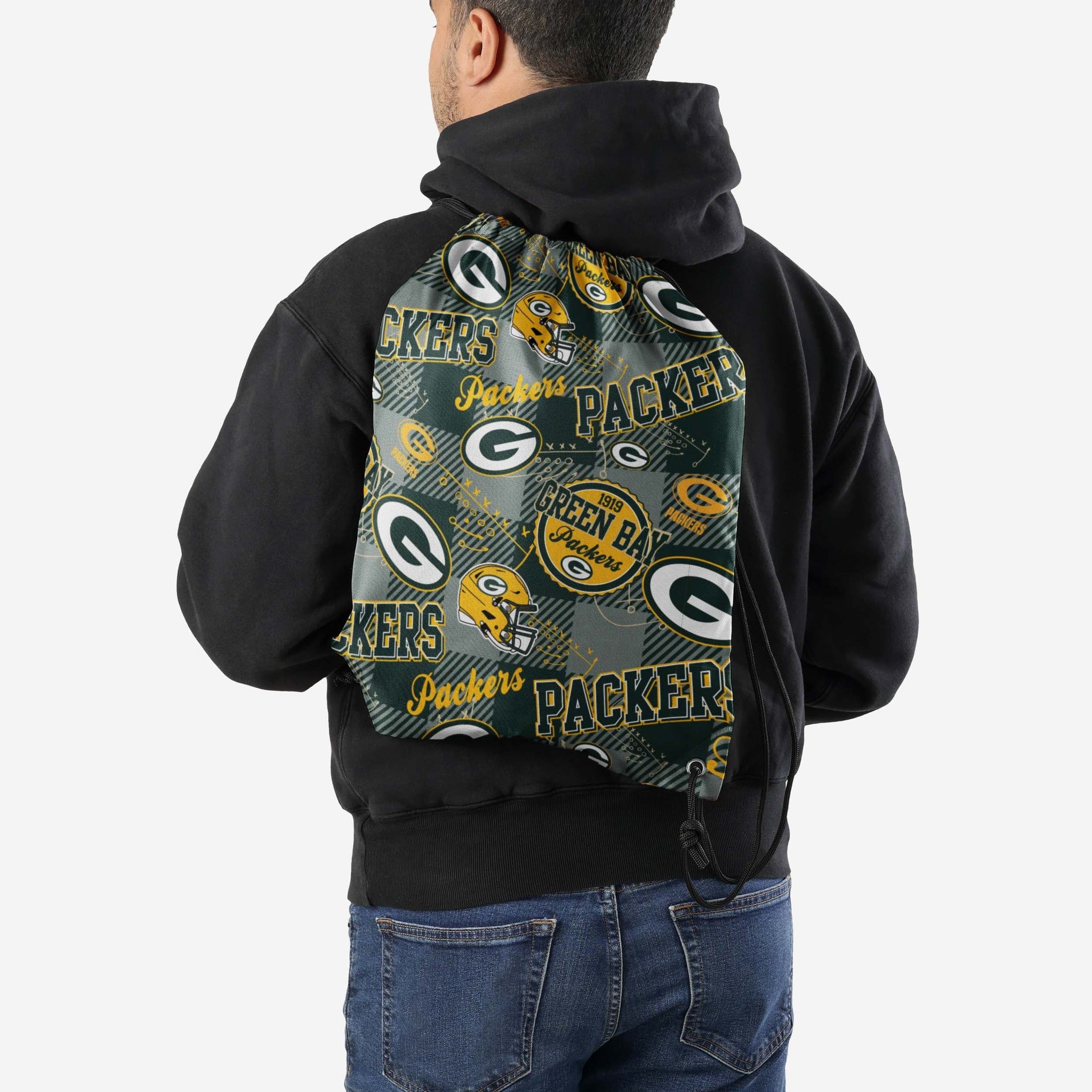 Step one: Pack up all your team spirit. Step two: Take it on the go. Step three: Repeat the first two steps for any adventure you go on with this Green Bay Packers Thematic Repeat Print Drawstring Backpack.