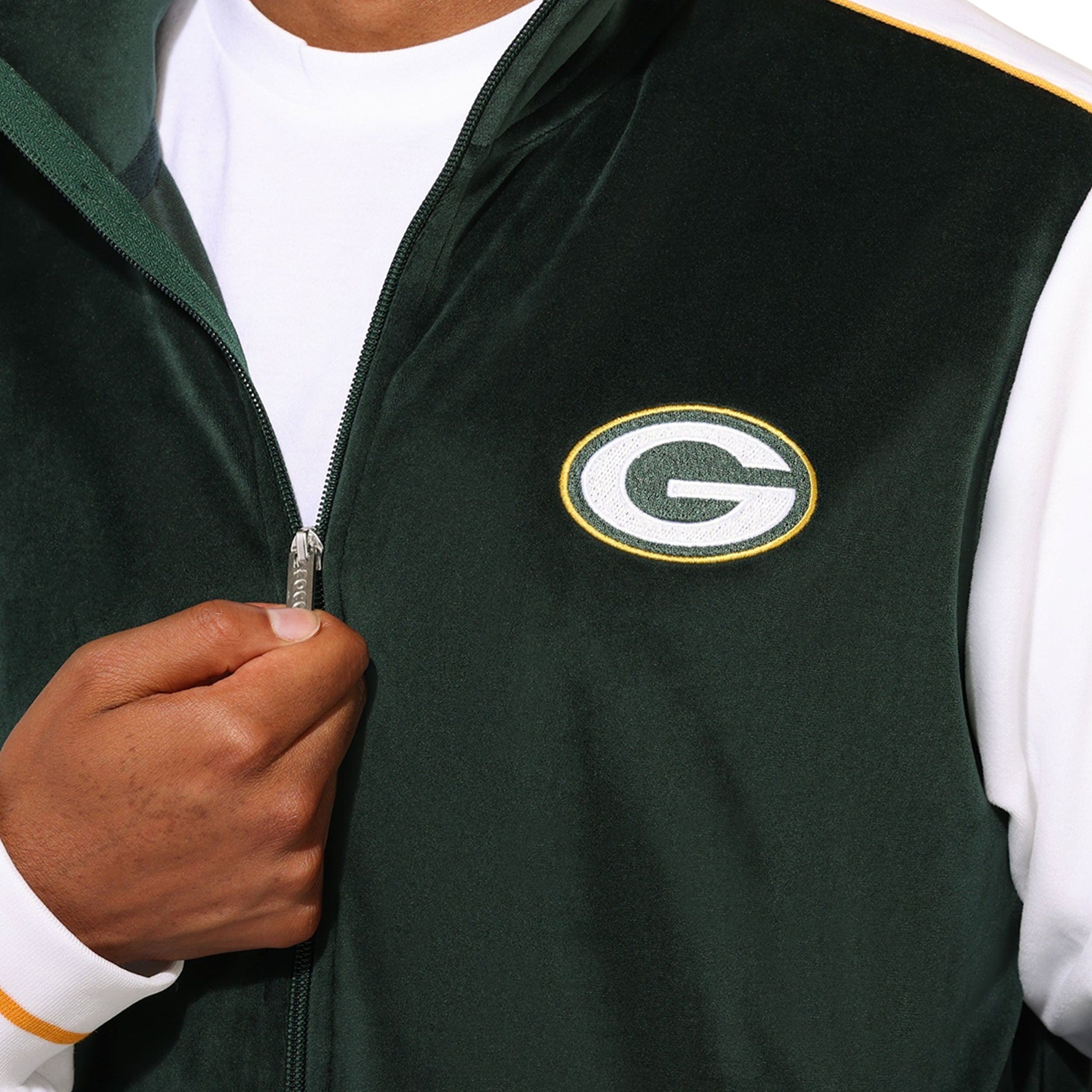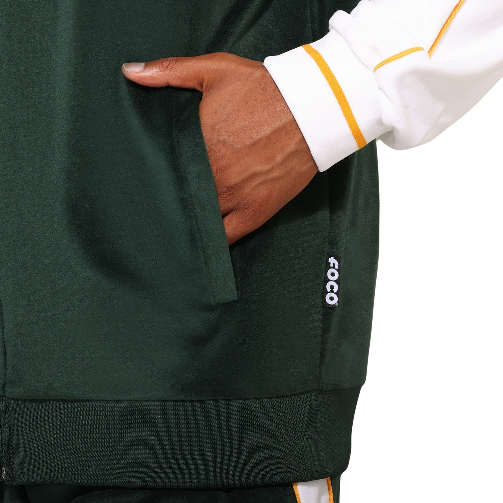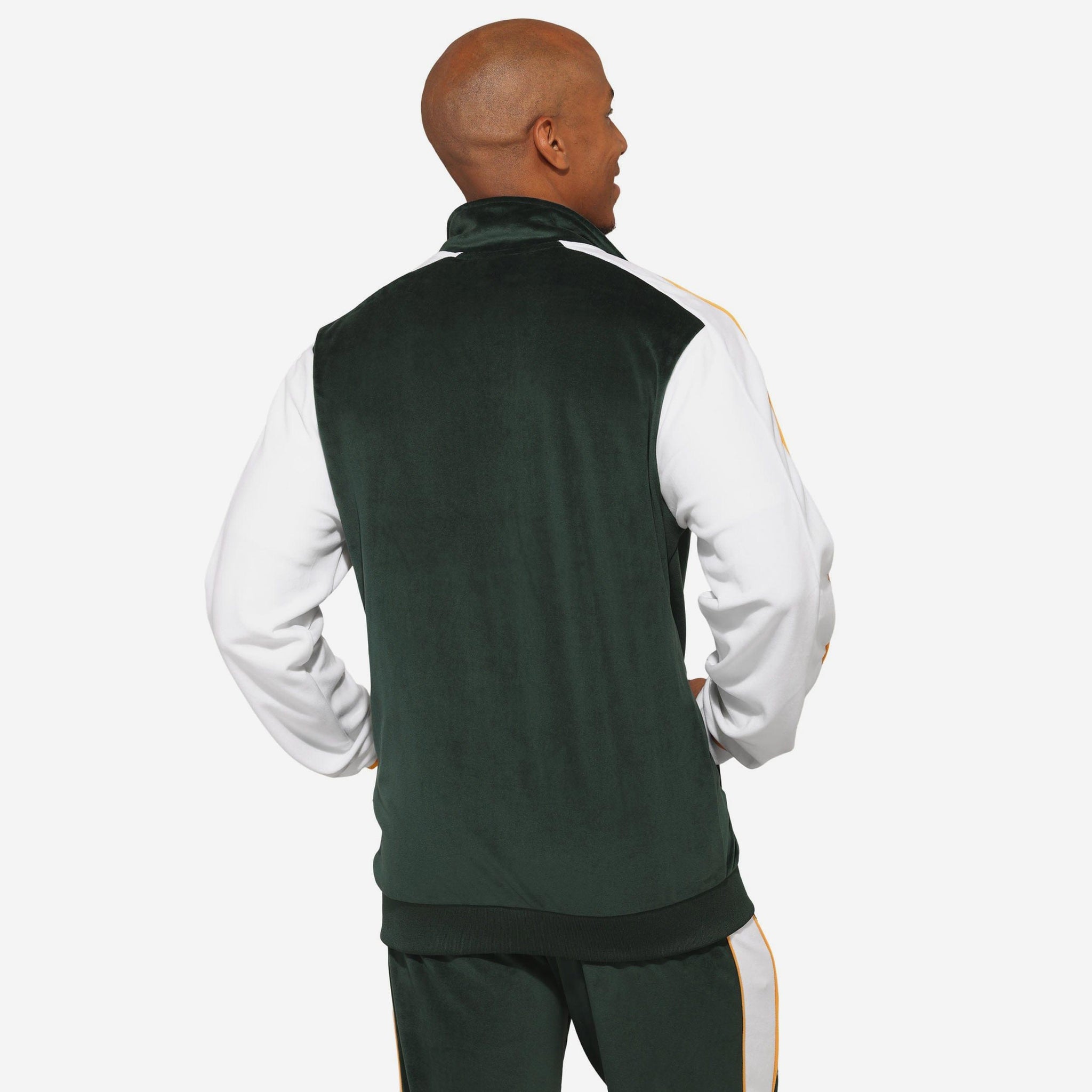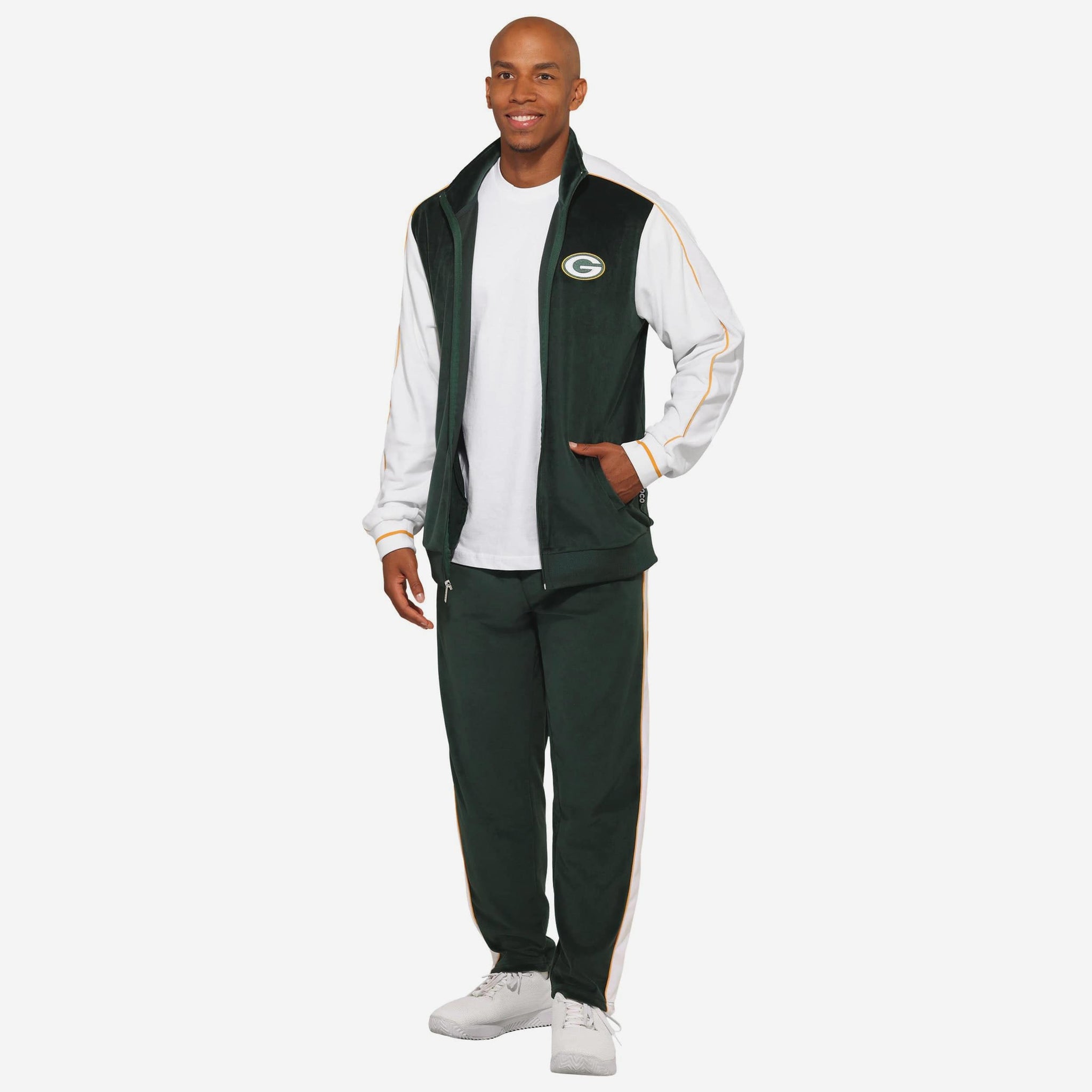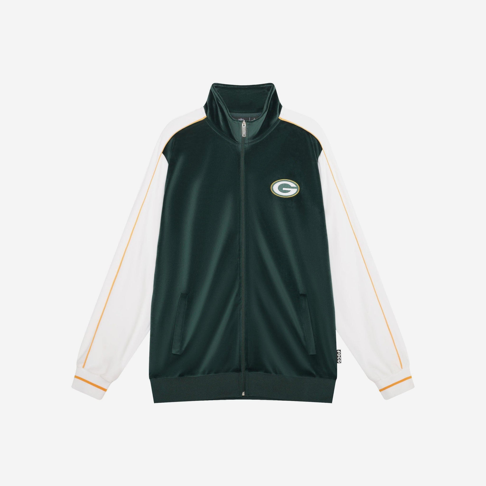 Soft, stylish, and straight-up iconic. Elevate your fan fit with this Green Bay Packers Two Tone Velour Zip Up Top! Featuring a sleek two-tone design, ultra-soft velour fabric, and a full front zipper, this top brings comfort, warmth, and team pride together in one stylish package.