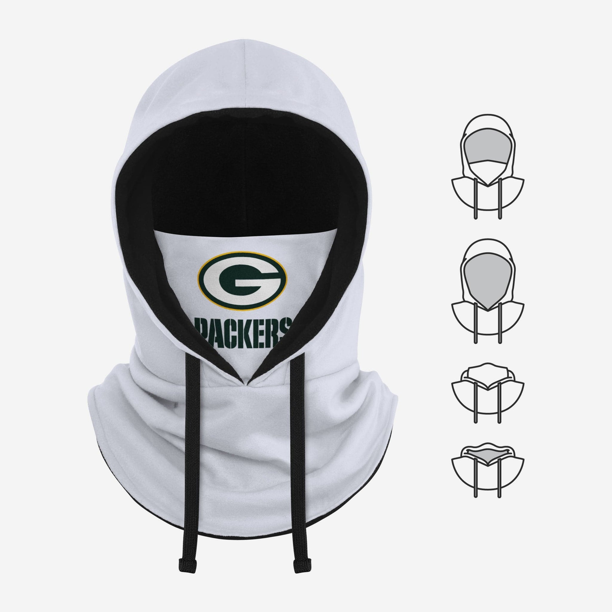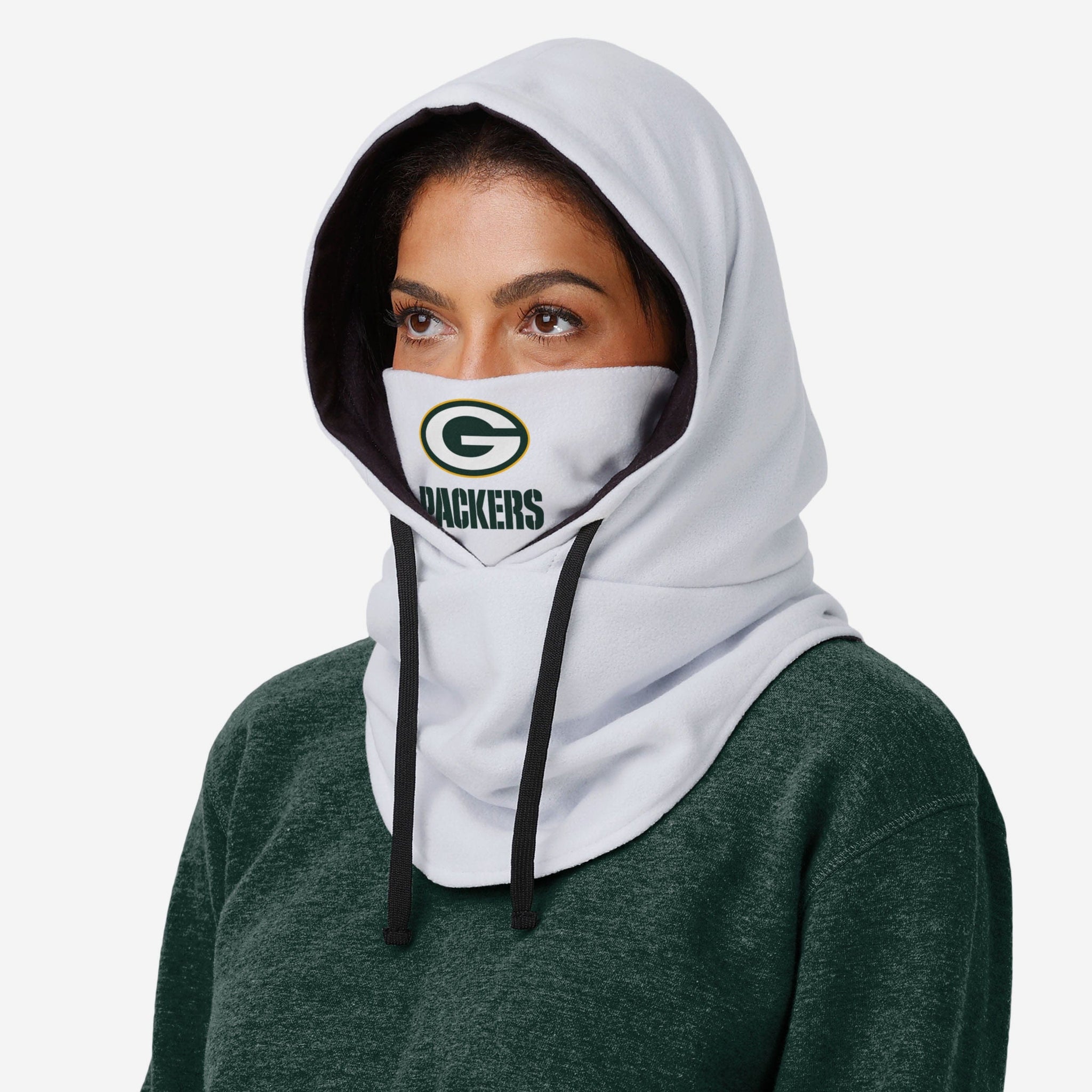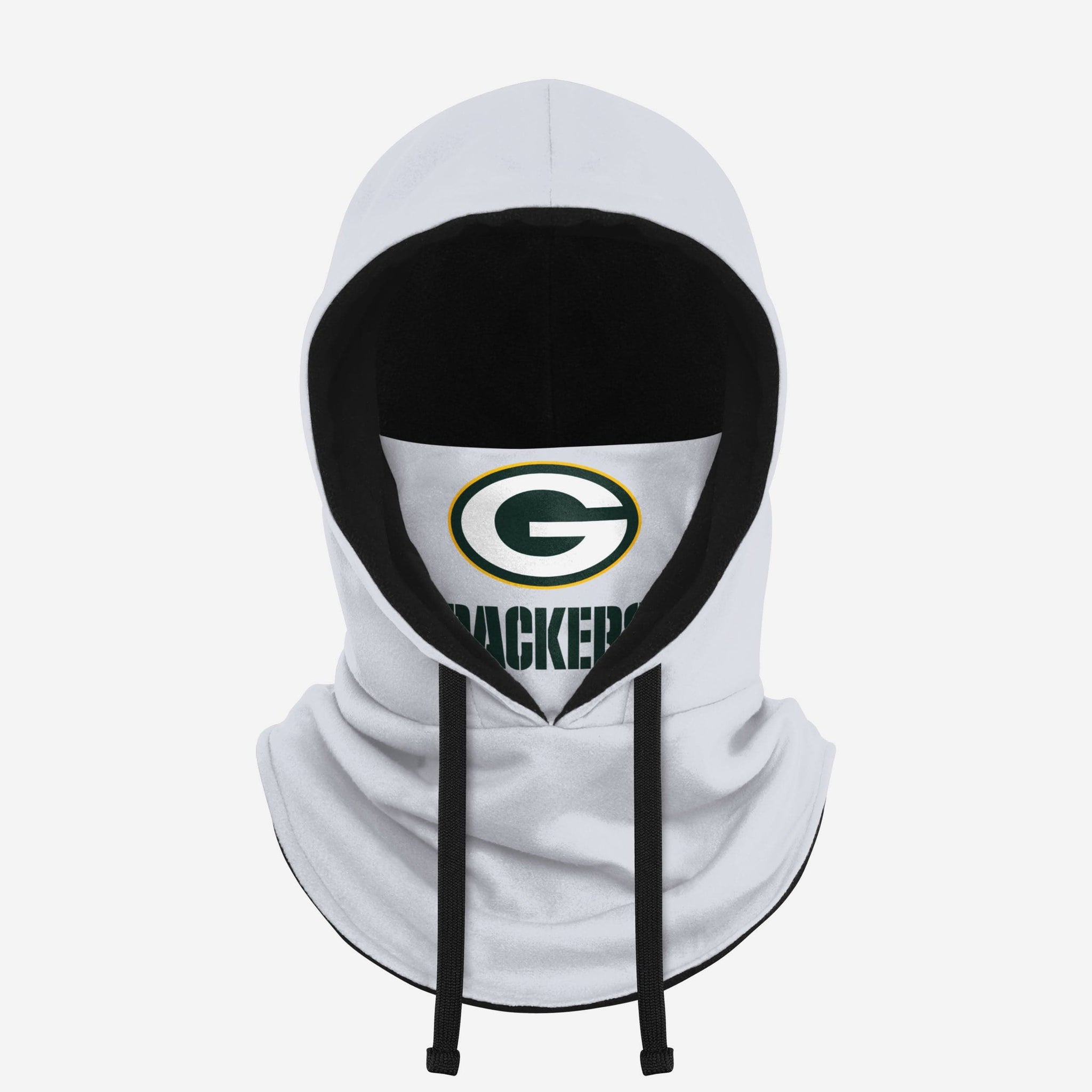 We're predicting white-out forecast conditions in your future when you take in the winter wonderland with this Green Bay Packers White Drawstring Hooded Gaiter.