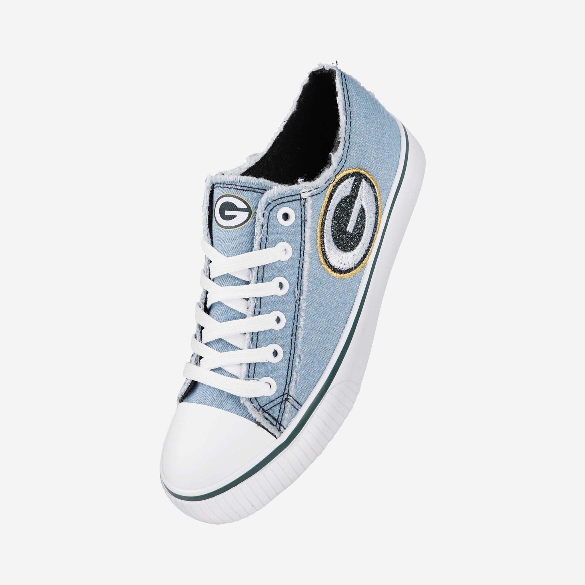 Nobody can dull your sparkle as a fan! Get ready to make all your game days denim days too as you shine on with a pair of Green Bay Packers Women's Denim Low Top Canvas Shoes.