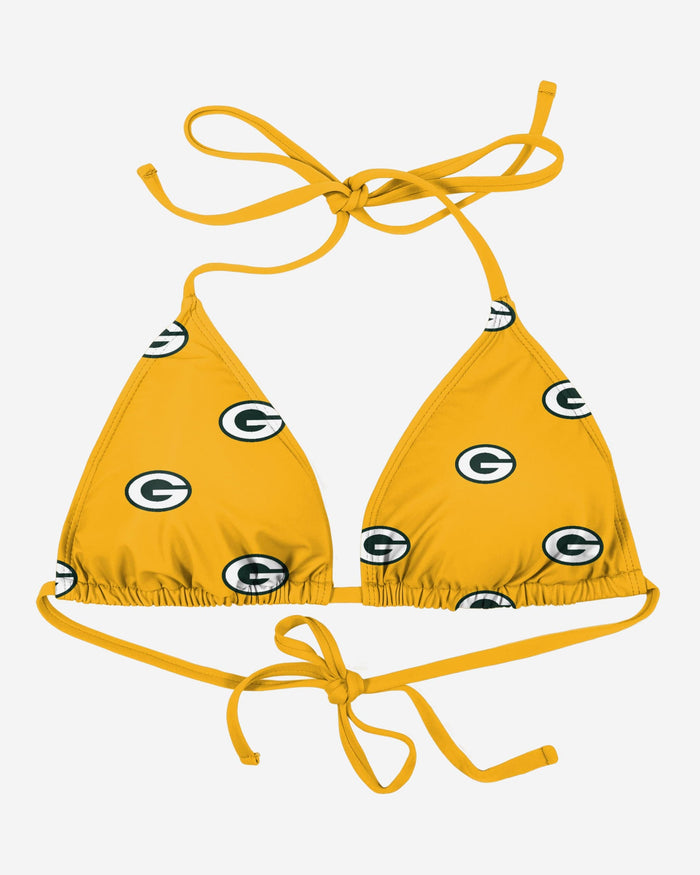 Take your team pride poolside and lounge like a legend in the Green Bay Packers Women's Mini Print Bikini Top!