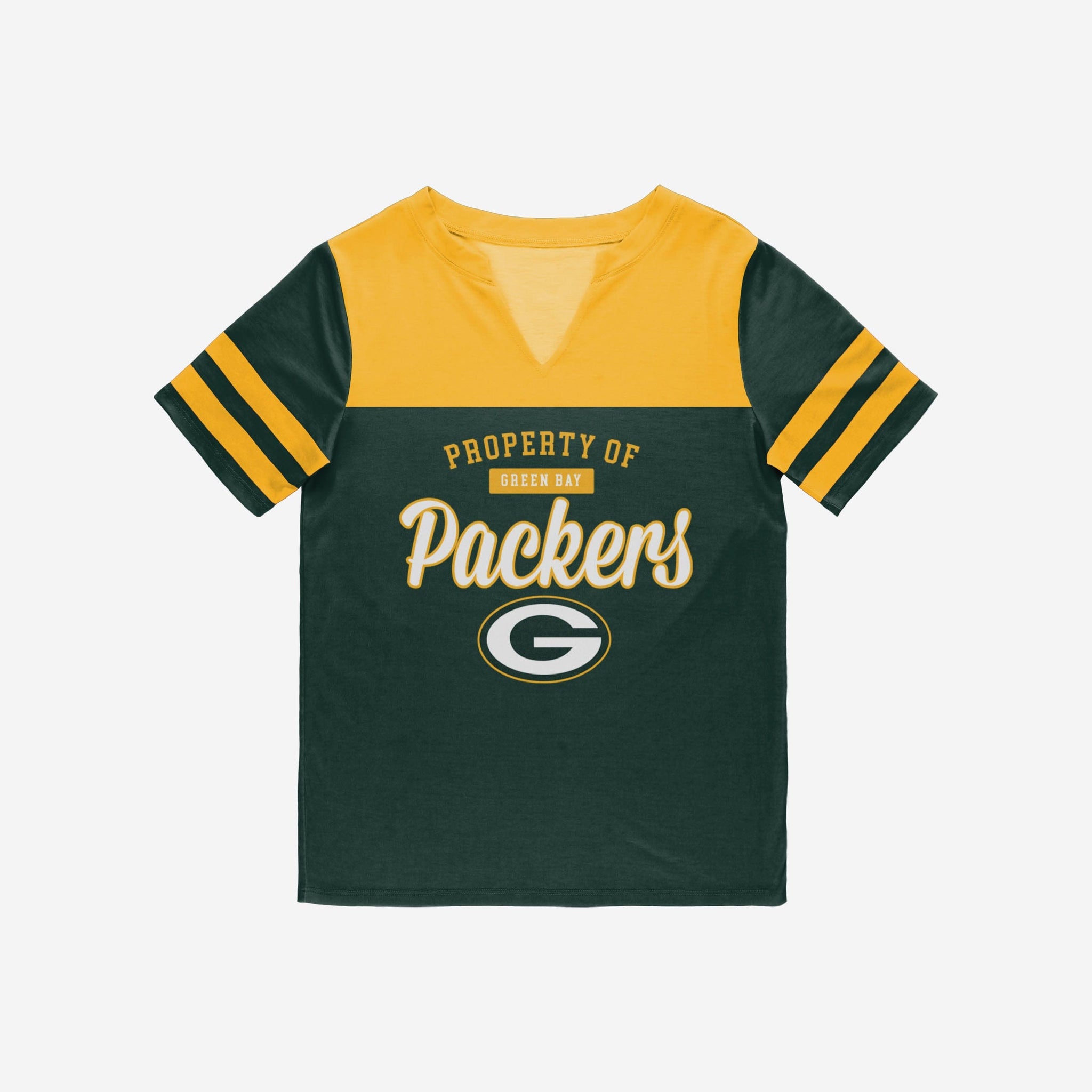 Ready. Set. Gameday! Dress to impress when you're chilling at the tailgate or cheering in the stadium with this Green Bay Packers Women's Team Stripe Property Of V-Neck Shirt.