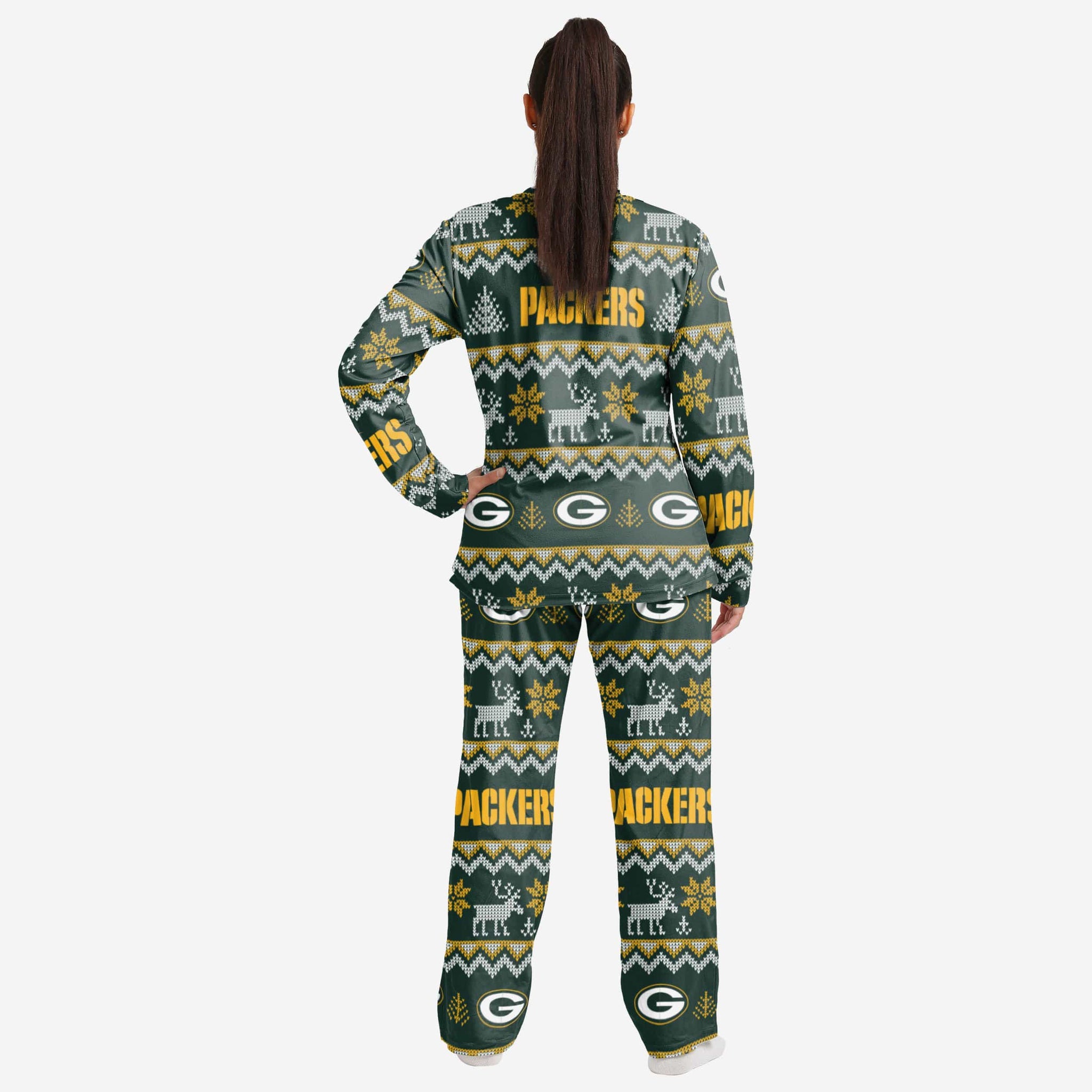 Get some matching family pajamas and dress to impress this holiday season! You won't want to miss these women's team pajamas! These women's PJ's are comfortable and show off your team spirit in the form of some sweet women's jammies. Introducing the Green Bay Packers Women's Ugly Pattern Family Holiday Pajamas! Don't forget to take your holiday photo with the whole family wearing matching Christmas pajamas!