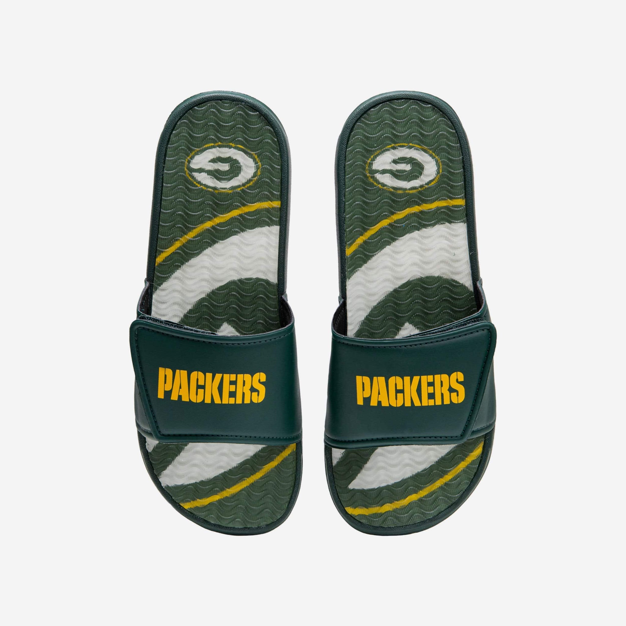 Whether you're at the game, hitting the beach, or enjoying a day at the pool, keeping your feet comfortable is just as important as showing off your fandom. You're in luck, because these Green Bay Packers Men's Wordmark Gel Slides can help you with both. Rep the team with every step.