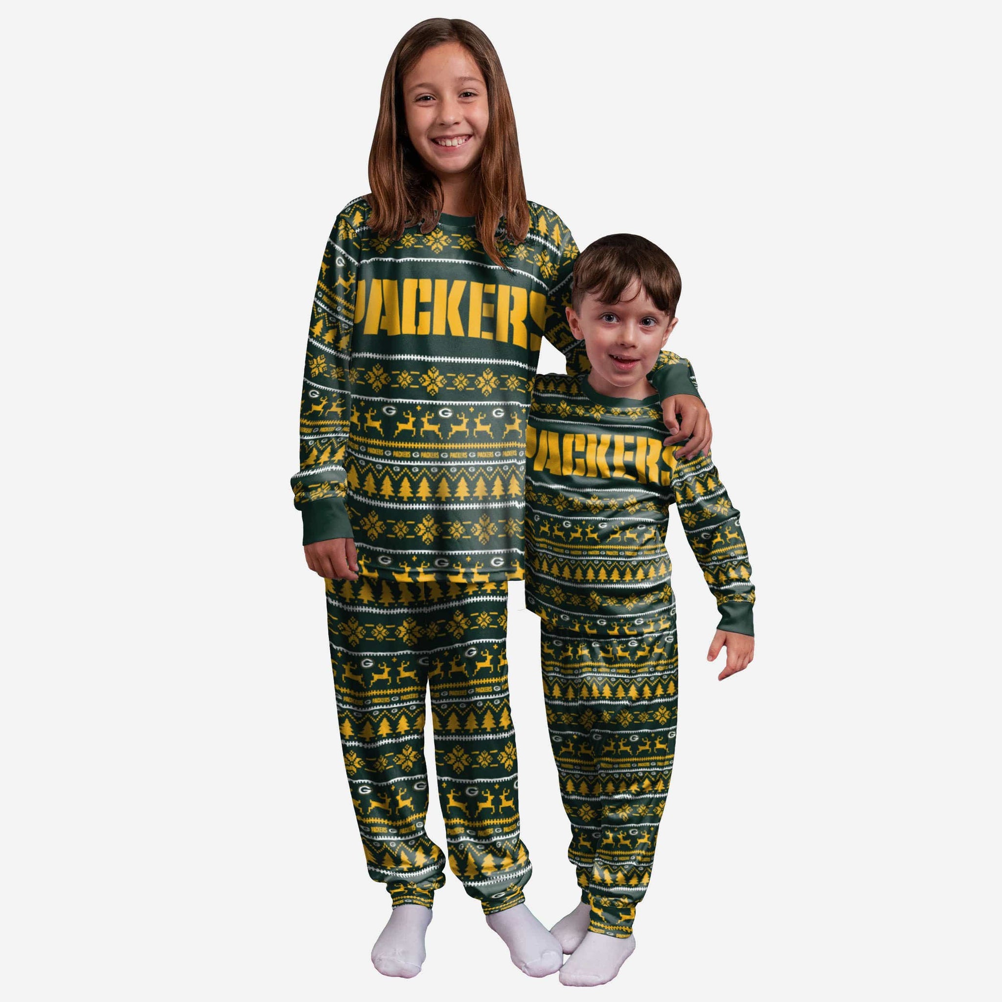 Get some matching family pajamas to turn your good night's sleep into a great night's sleep. You won't want to miss these kids' team pajamas. These youth PJ's are comfortable and show off your team spirit in the form of some sweet youth jammies. Introducing Green Bay Packers Youth Family Holiday Pajamas. Don't forget to take your holiday photo with the family wearing matching Christmas pajamas.