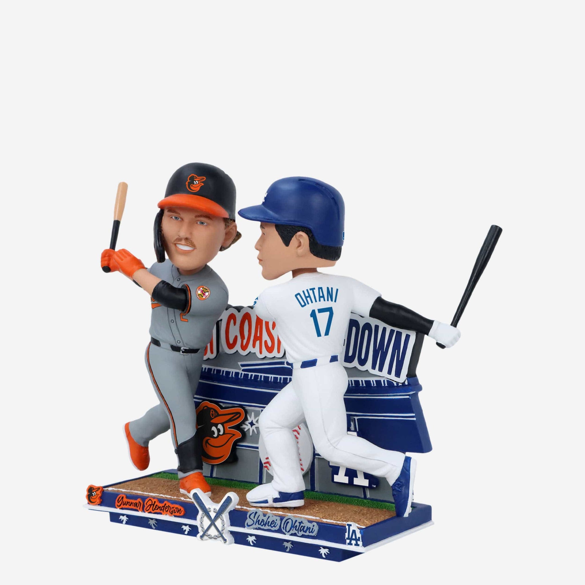Charm City meets Tinseltown! Take it out to the wild west for a battle to remember with the Gunnar Henderson & Shohei Ohtani Baltimore Orioles & Los Angeles Dodgers West Coast Sho Down Dual Bobblehead.