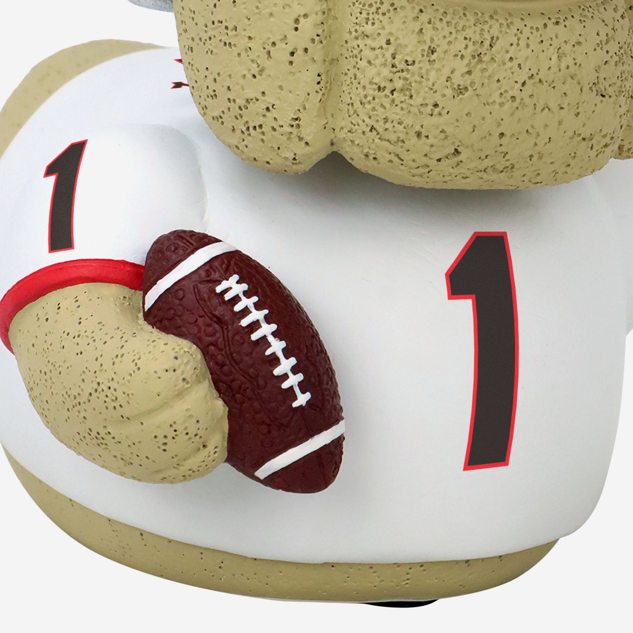 - Portrays a duck figure of Hairy Dawg in his white gameday uniform, ready to make a splash in your collection