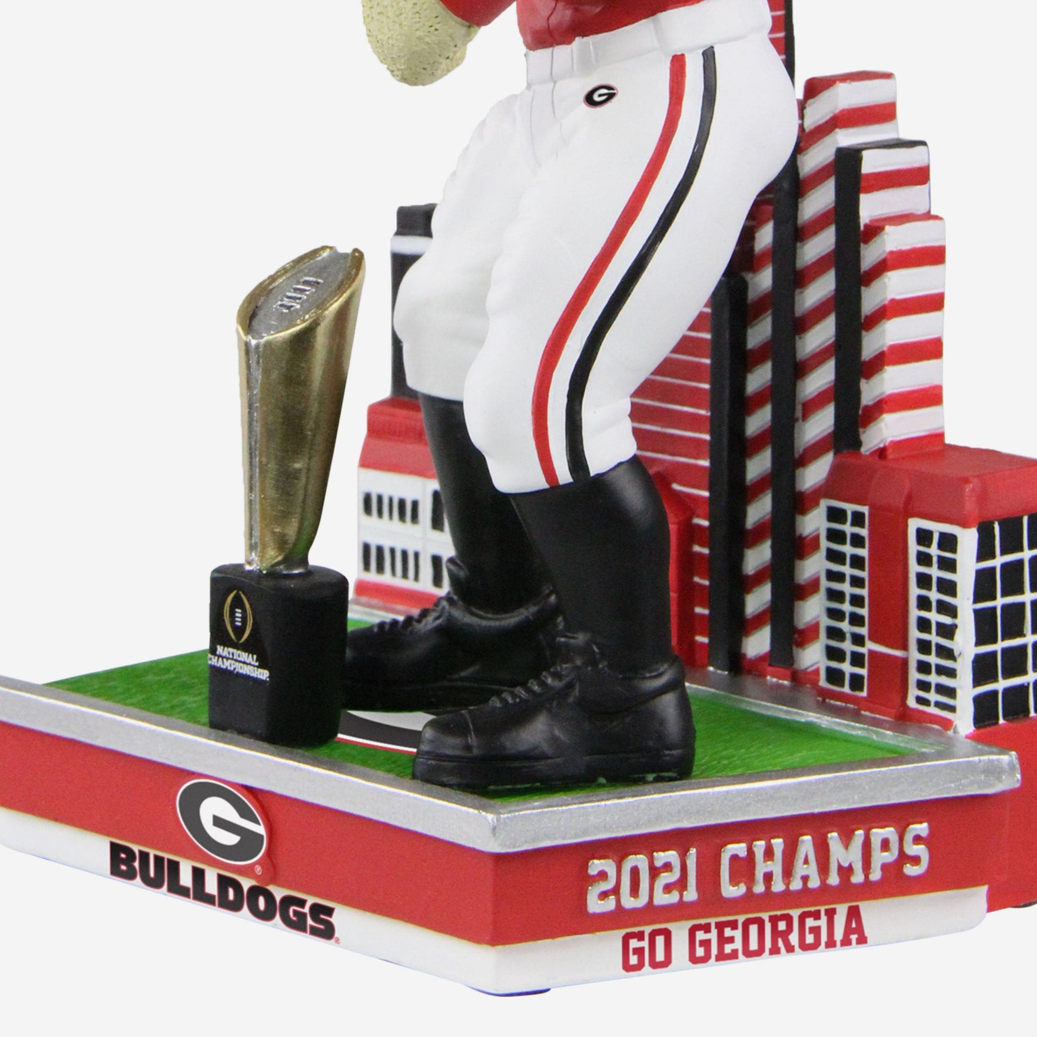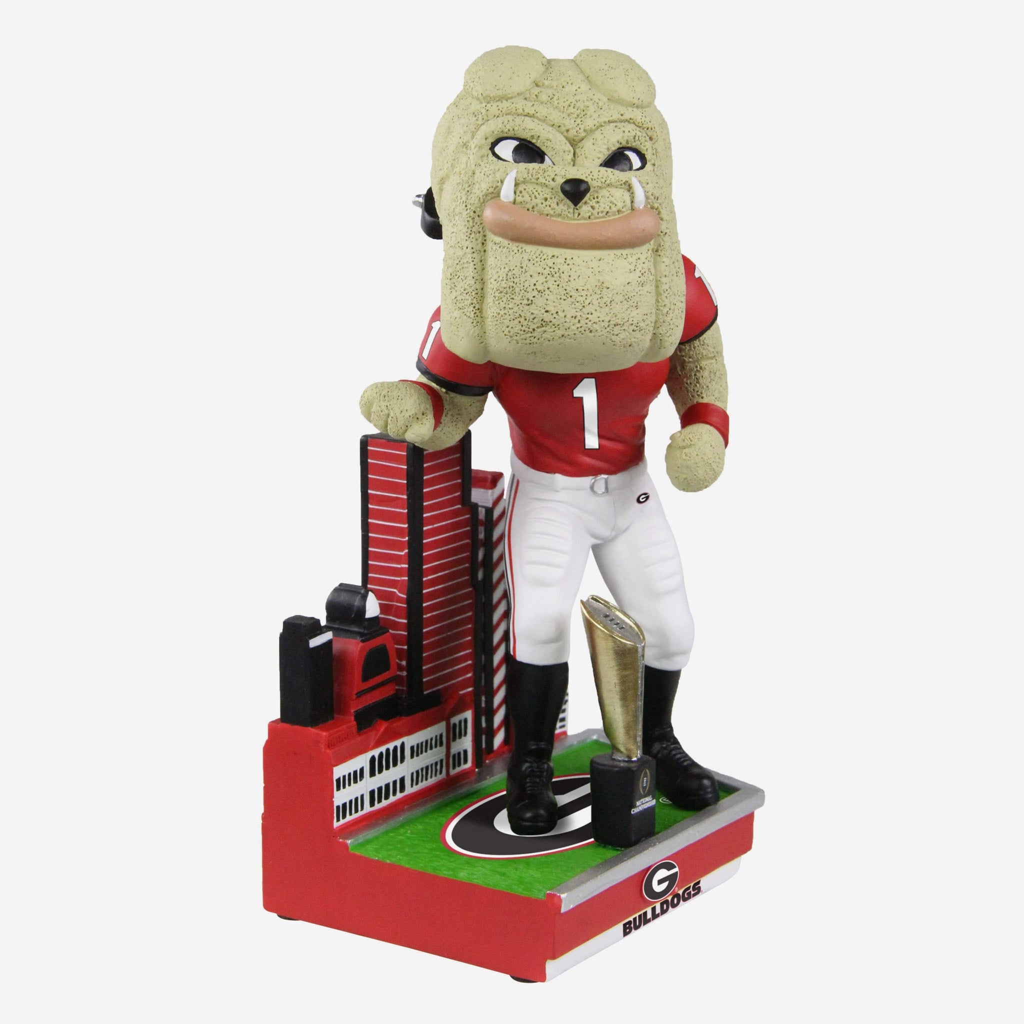 - Miniature national championship trophy accent on top of base, because no championship celebration is complete without a little hardware