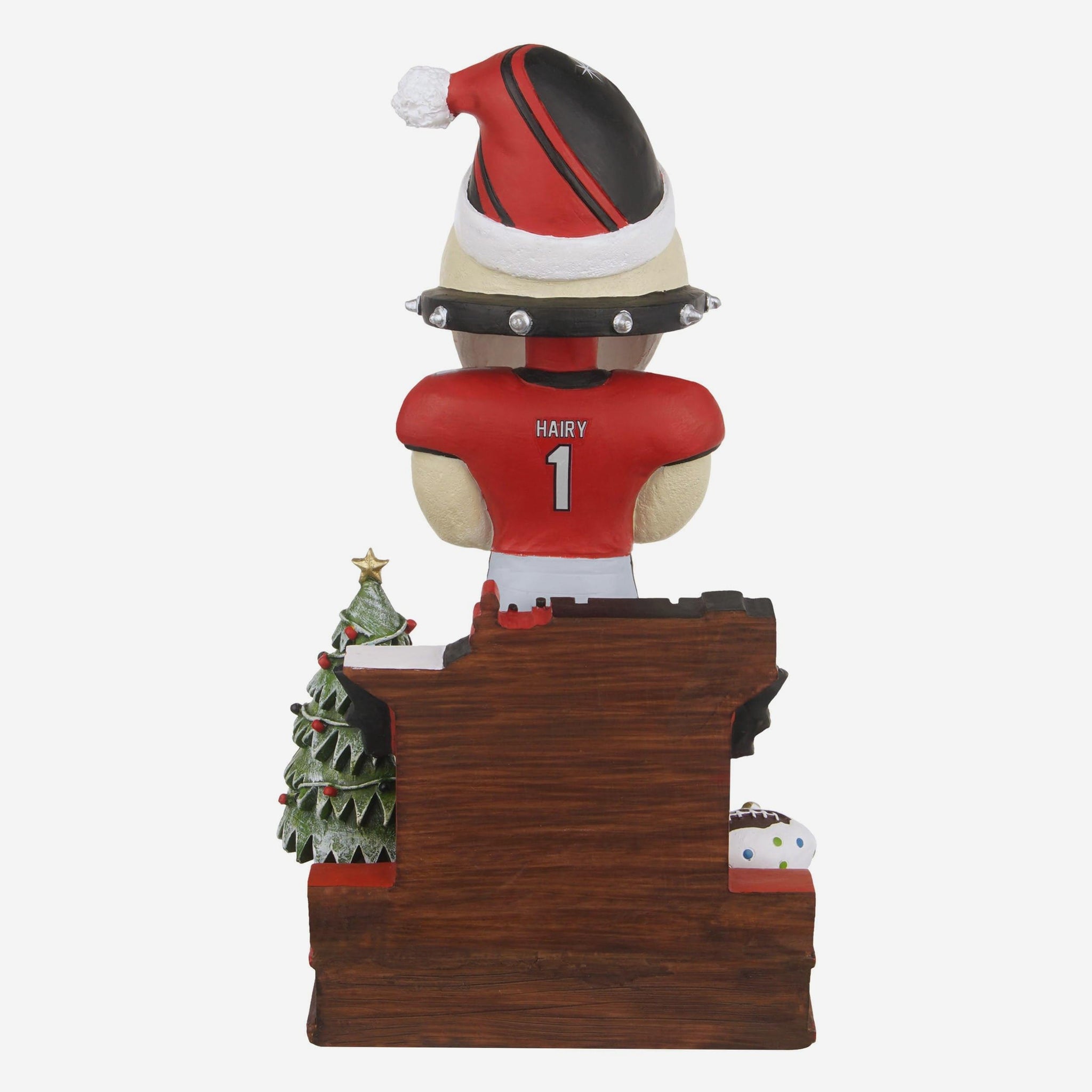 • Portrays Hairy Dawg wearing his gameday uniform and wearing a santa hat standing in front of a detailed snow globe centerpiece for a festive, heartwarming scene