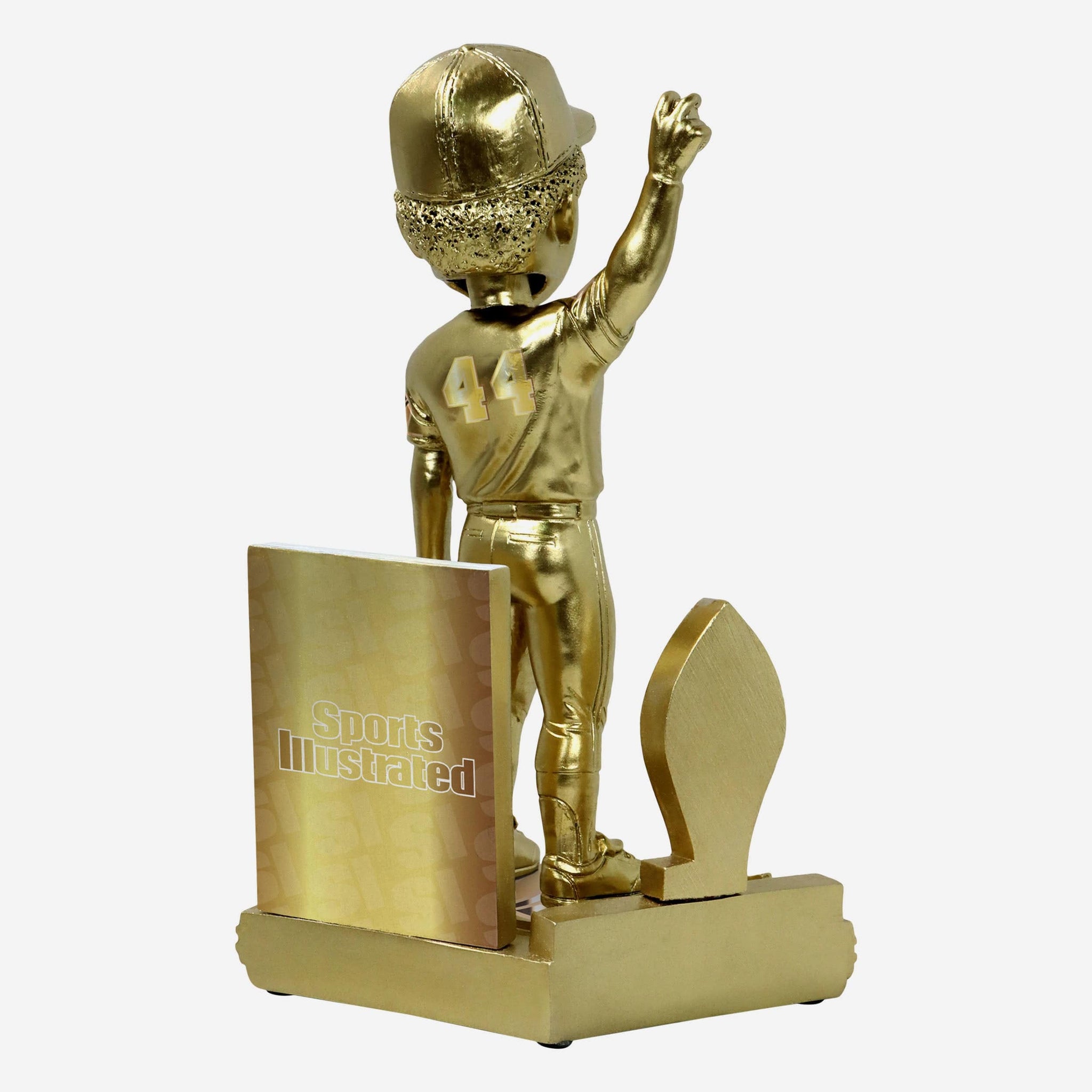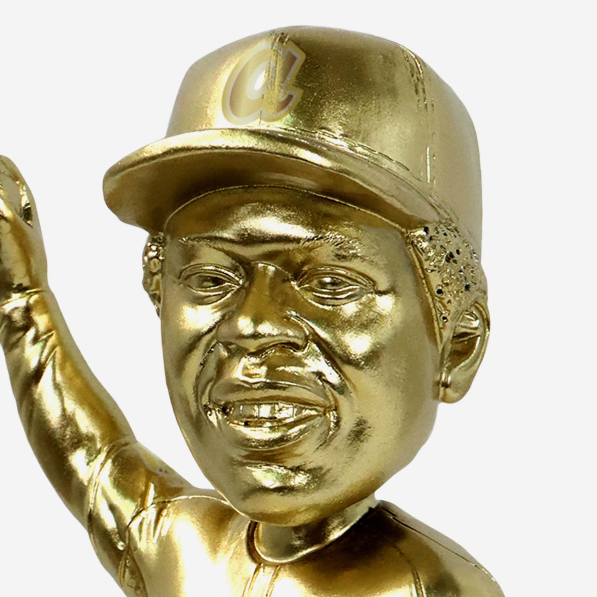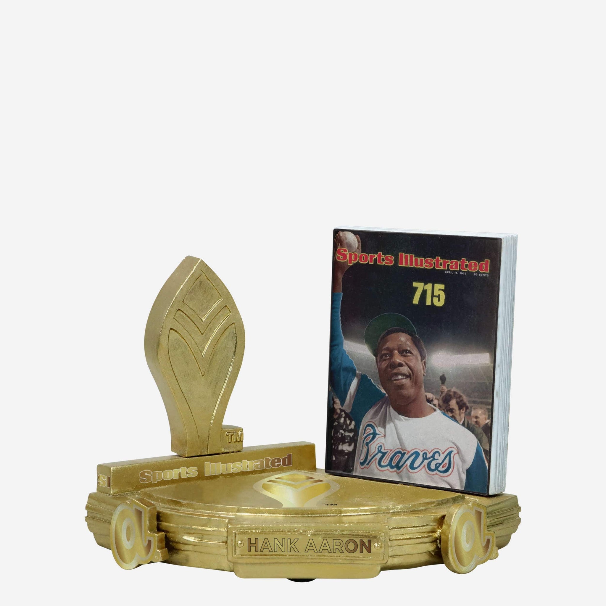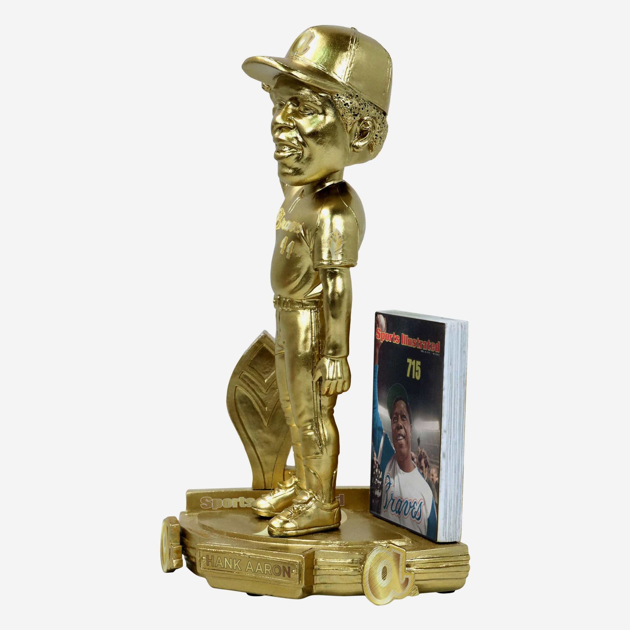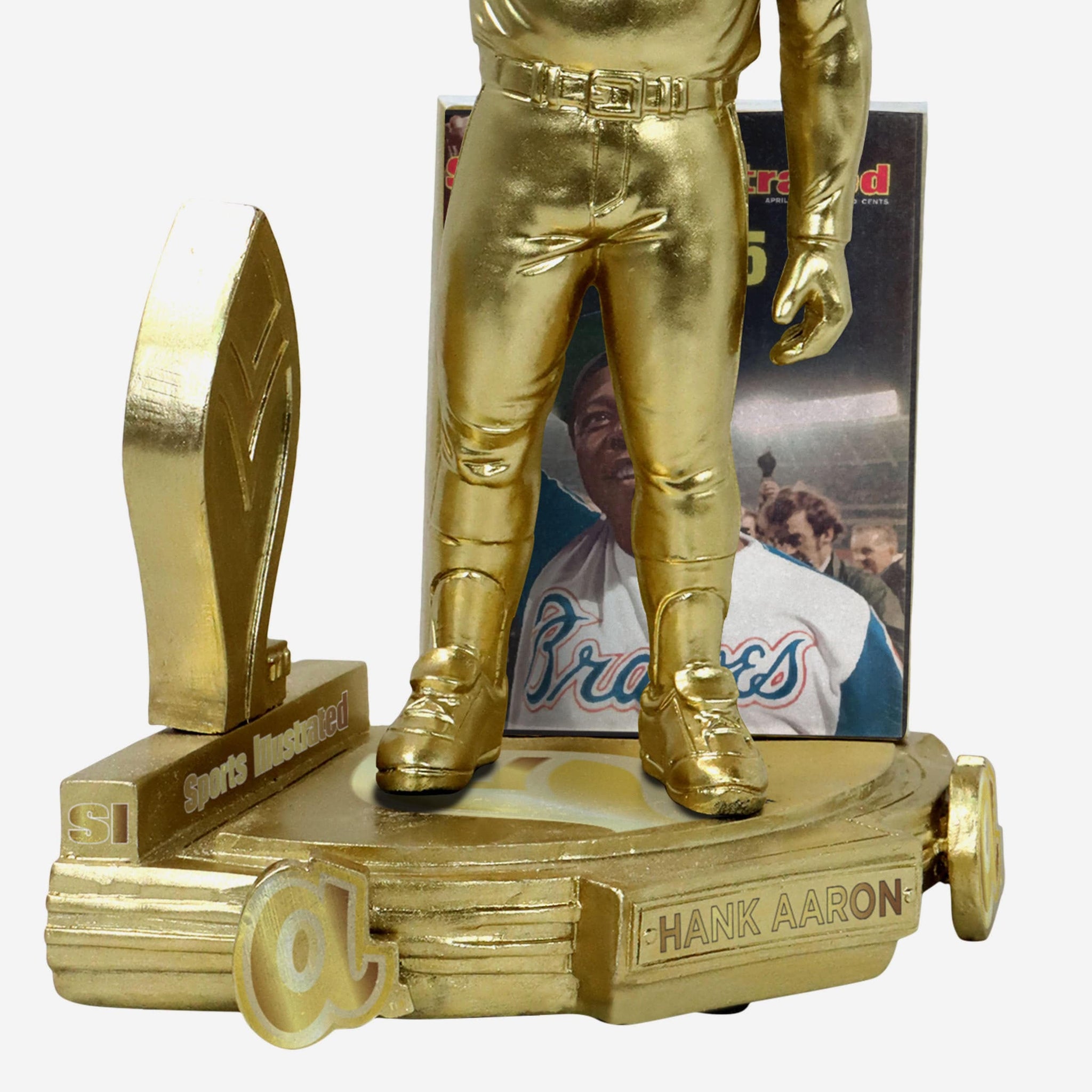 - Portrays an electroplated gold figure of Hank Aaron posing in an all-over gold gameday uniform, re-creating his famous Sports Illustrated cover