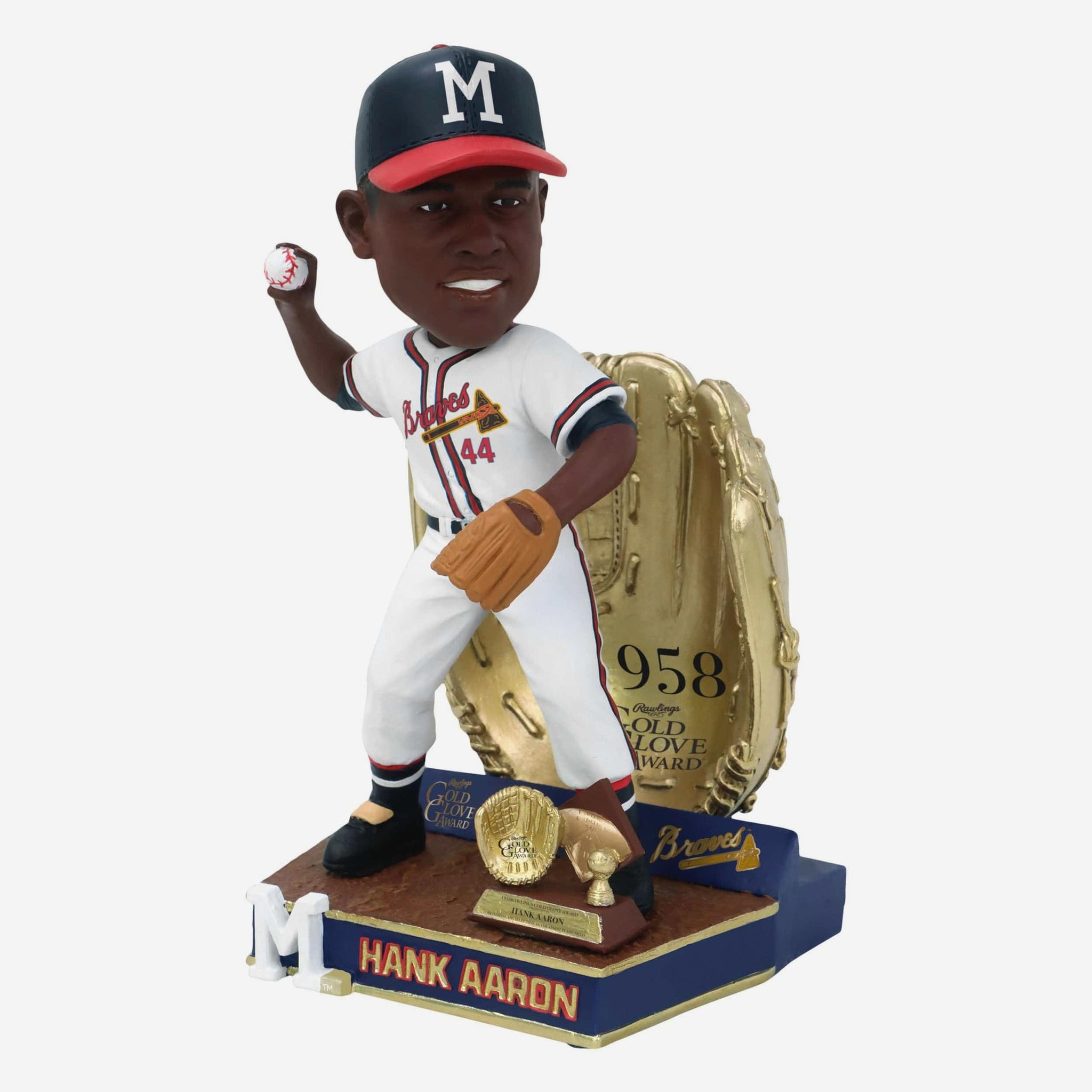 Hammerin’ Hank did it all. Honor his golden defense with this Hank Aaron Milwaukee Braves 1958 Gold Glove Bobblehead.