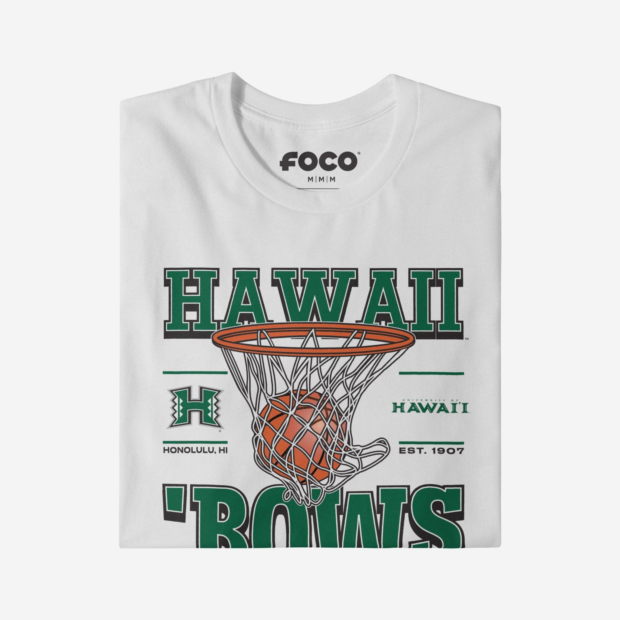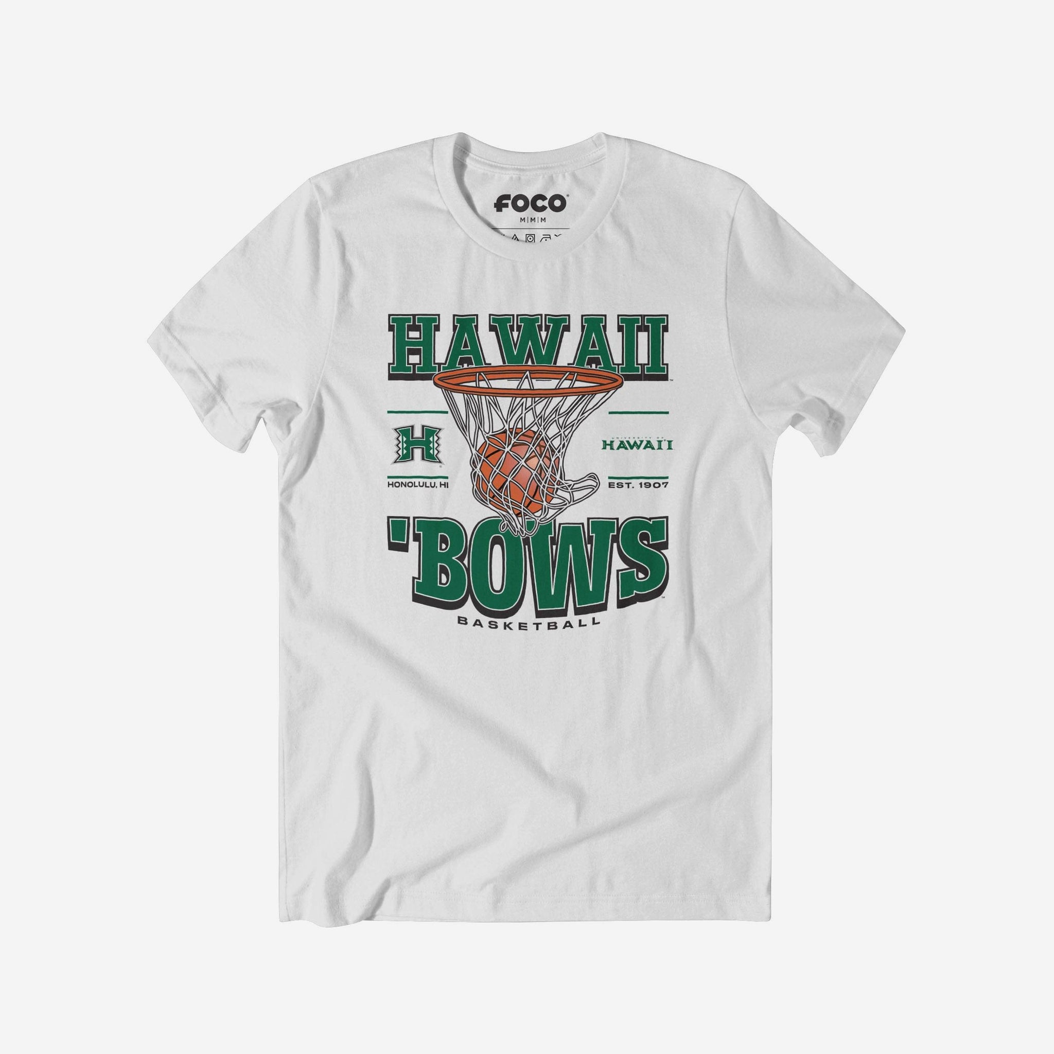 This top features a design that showcases your all-important team colors, a team logo display, a team wordmark name display, year of team establishment, and a basketball swishing through a net display meaning this t-shirt will prove your unmatched dedication to the Hawaii Rainbow Warriors when you're at the game or watching at home. In other words, this graphic tee is about to be your new favorite teammate.