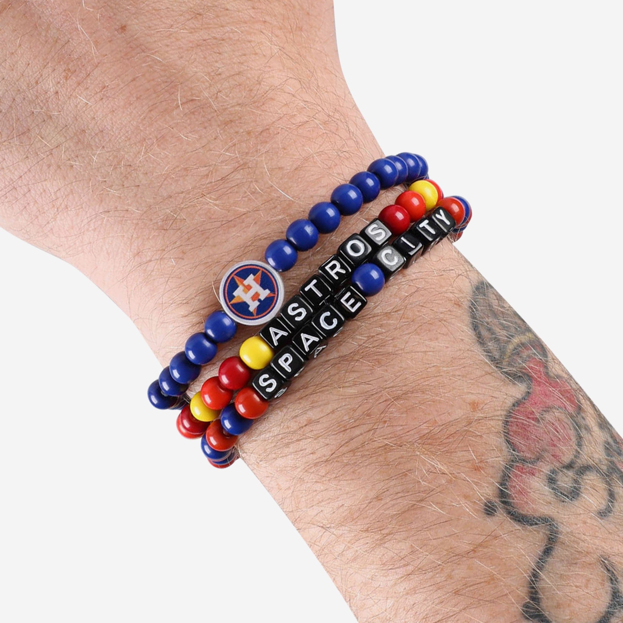 A whole new way to rep the team in style is here. Step up your fan fashion sense with this Houston Astros 3 Pack Beaded Friendship Bracelet. These matching friendship bracelets have an all-over team-colored design and team logo displays, which makes them the perfect way to show your support for the Houston Astros on gamedays and every day in between.