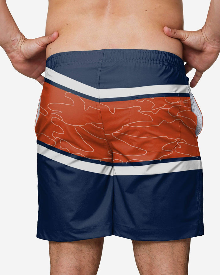 - Multi-team color design with bold, diagonal wordmark logo on front that will boldly show off your fandom as you stroll down the beach
