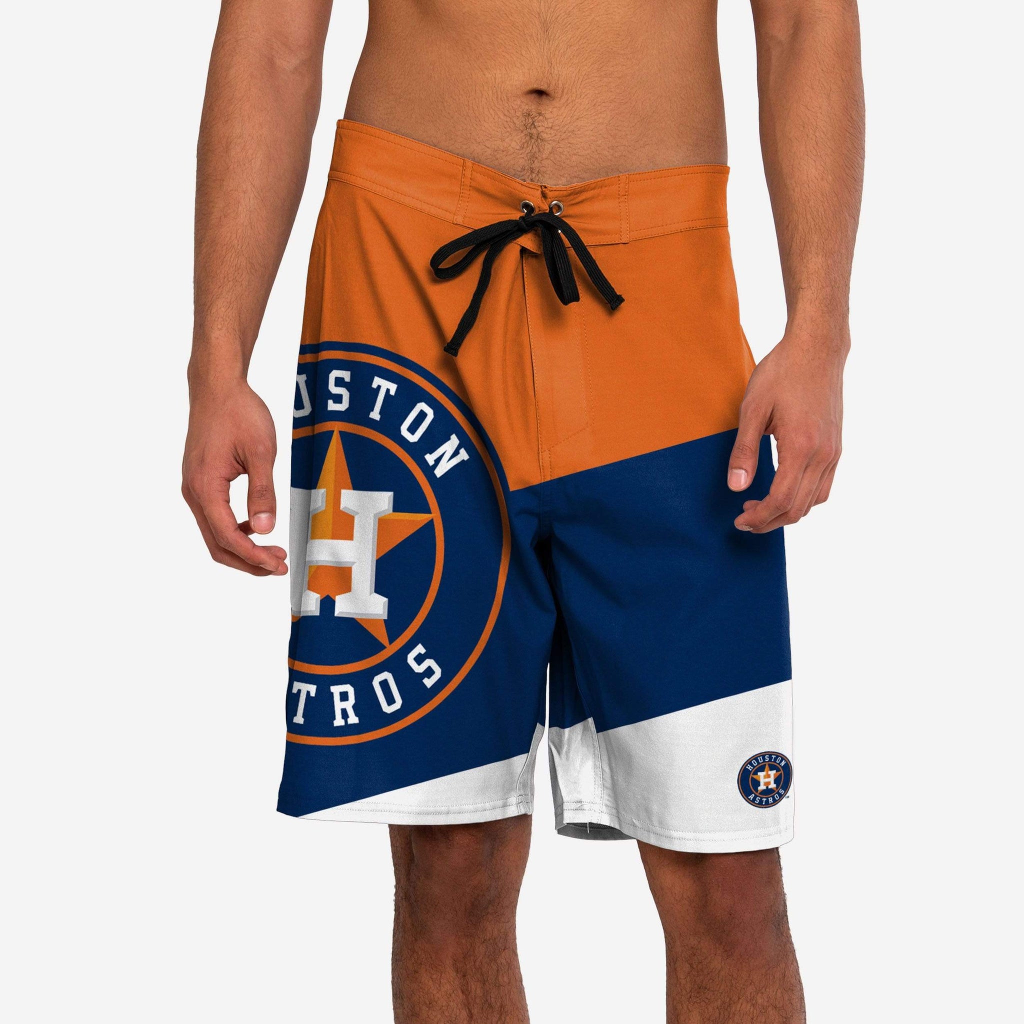 Dominate summer style the same way your team dominates their opponents. These Houston Astros Cropped Logo Colorblock Boardshorts will have you ready for every pool party, beach day, and barbecue.