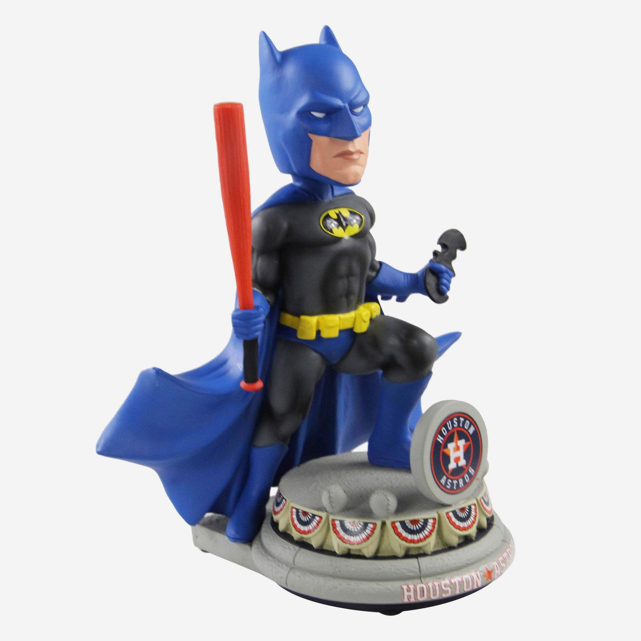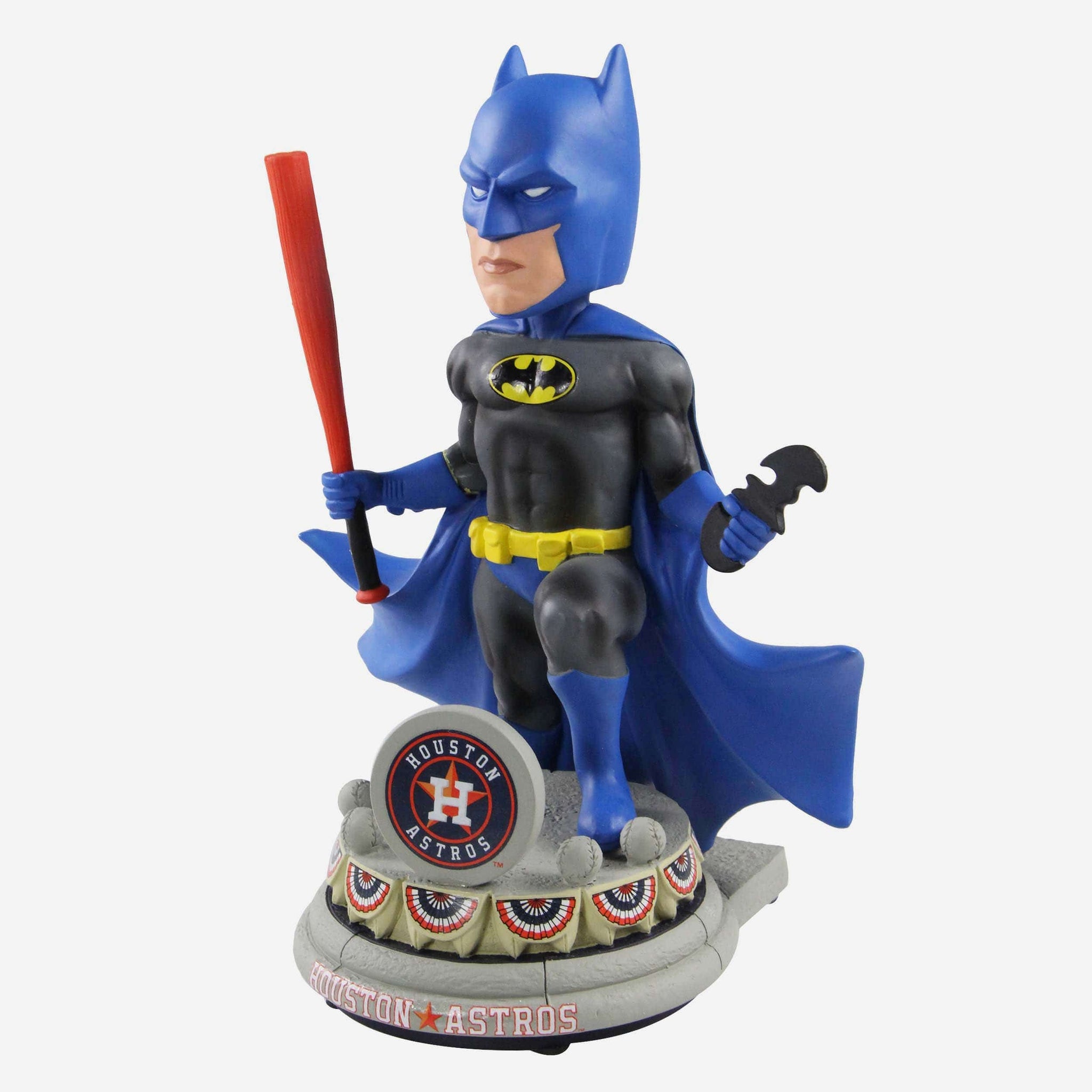 Batman? Holding a baseball bat? That's, like, bat-ception. Step up to the plate and hit a grand slam straight out of Gotham with this Houston Astros Batman DC Bobblehead.