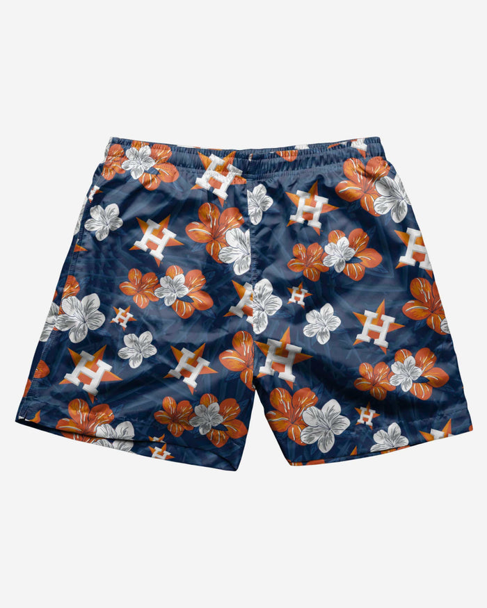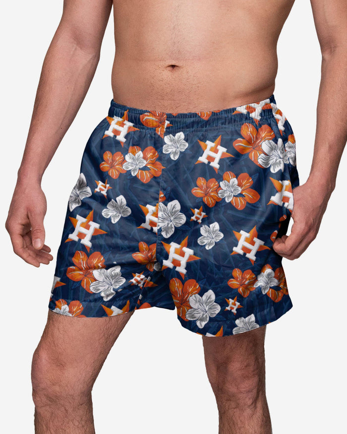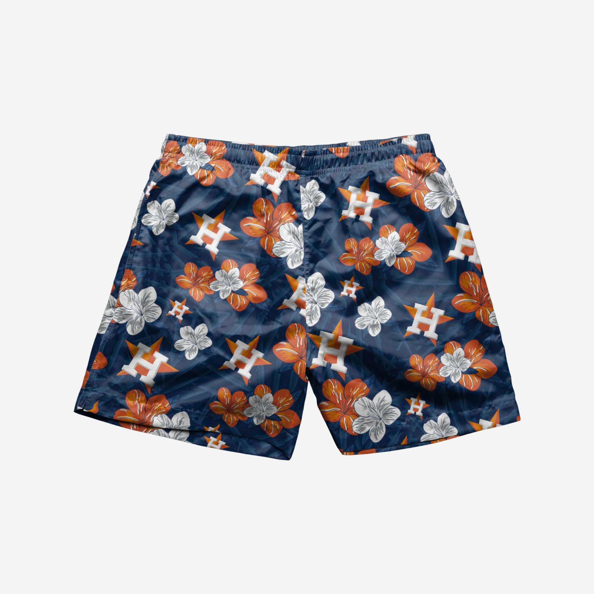 Rock your fandom and say "aloha" to the pool, ocean, lake, hot tub, or whatever body of water you're getting into while you wear these Houston Astros Hibiscus Swimming Trunks.