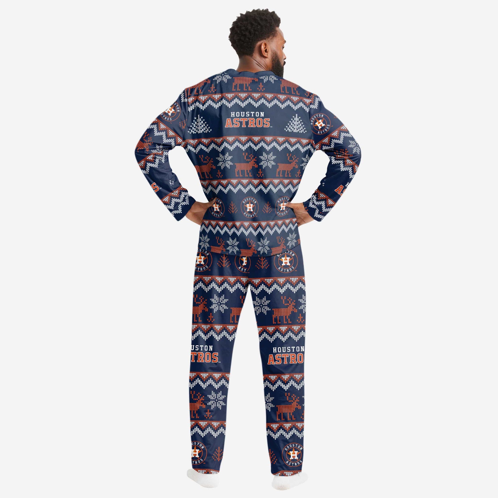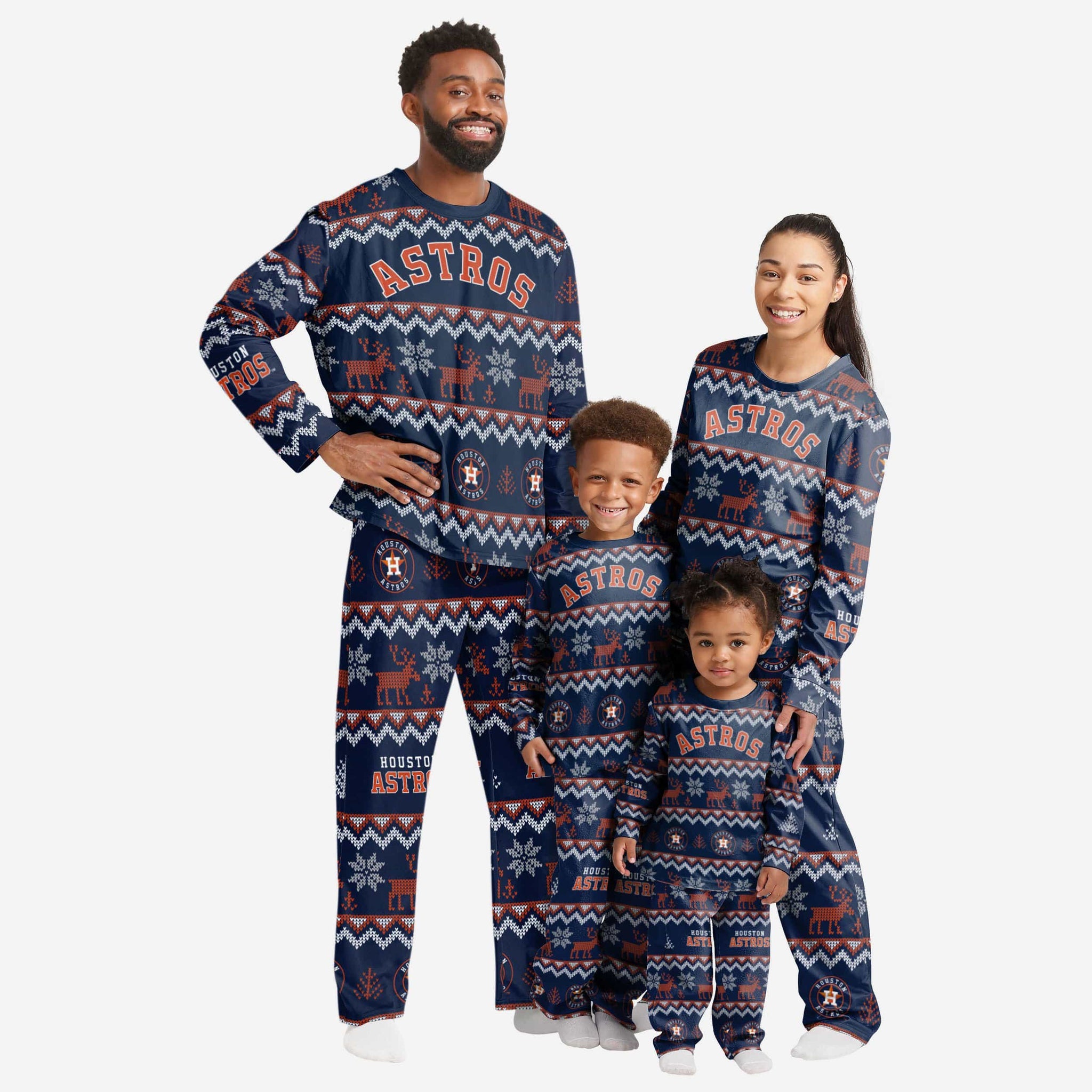 Get some matching family pajamas and dress to impress this holiday season! You won't want to miss these men's team pajamas! These men's PJ's are comfortable and show off your team spirit in the form of some sweet men's jammies. Introducing the Houston Astros Ugly Pattern Family Holiday Pajamas! Don't forget to take your holiday photo with the whole family wearing matching Christmas pajamas!