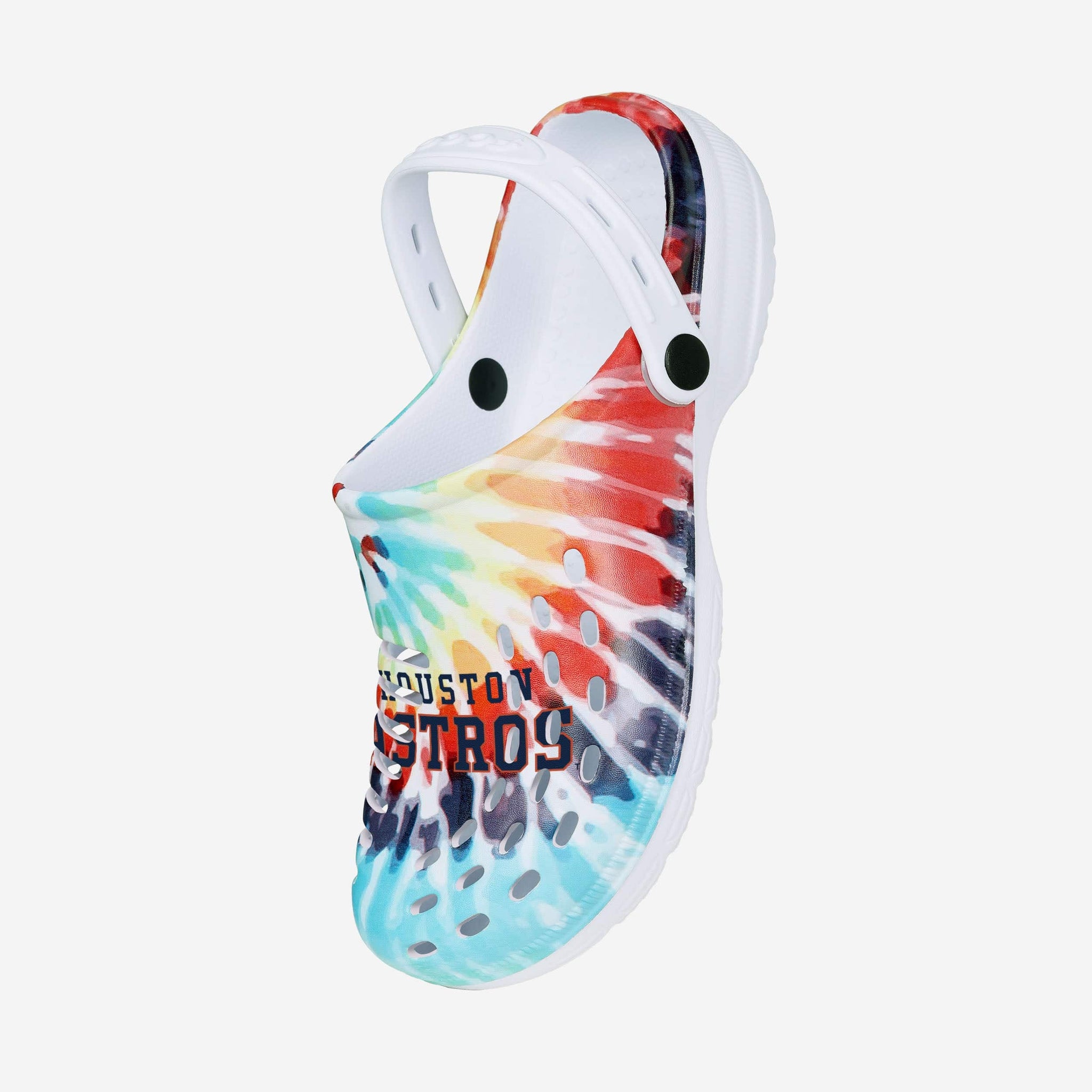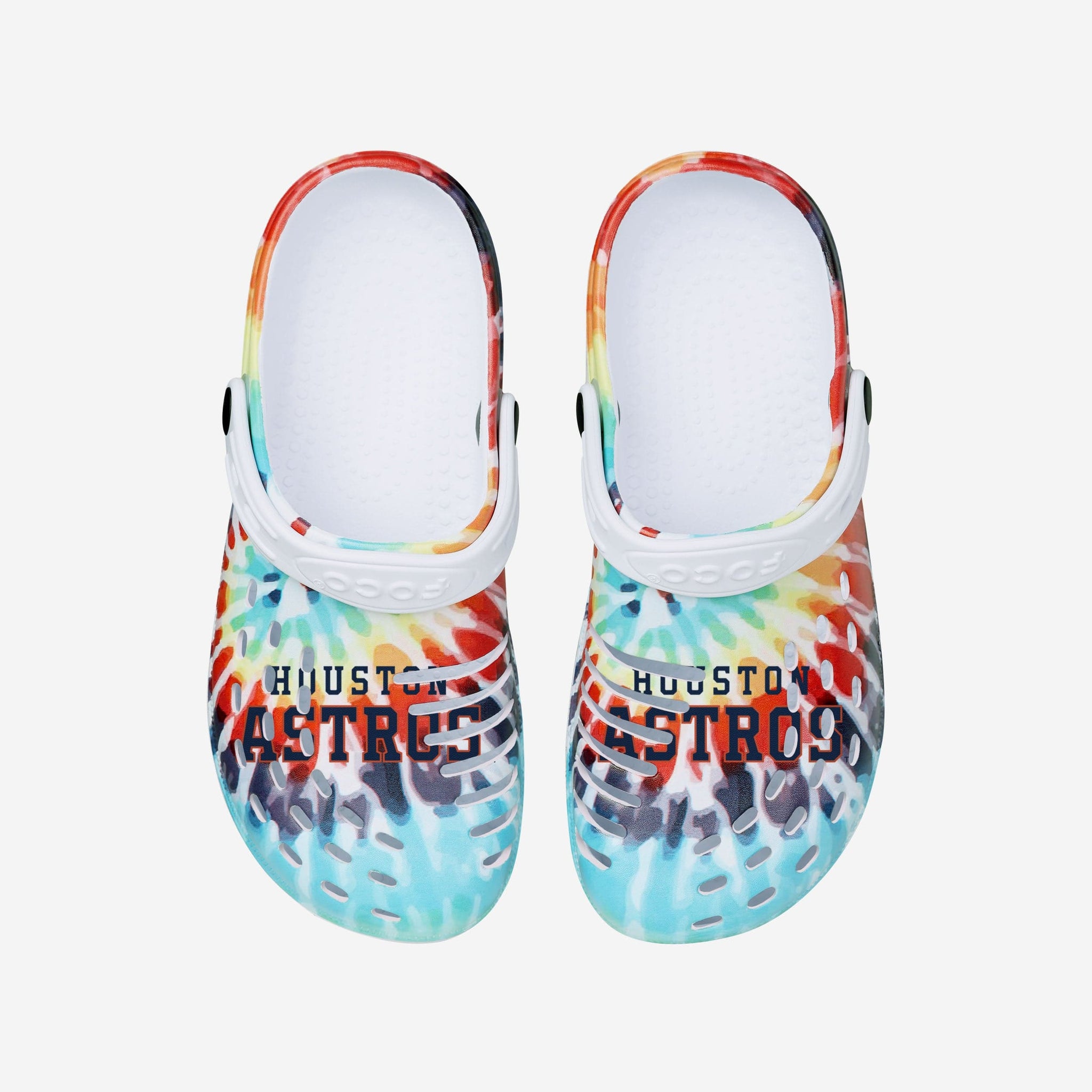 Peace. Love. Tie-dye. Step back in time with some style from yesteryear by rocking these Houston Astros Women's Tie-Dye Clogs with Straps.