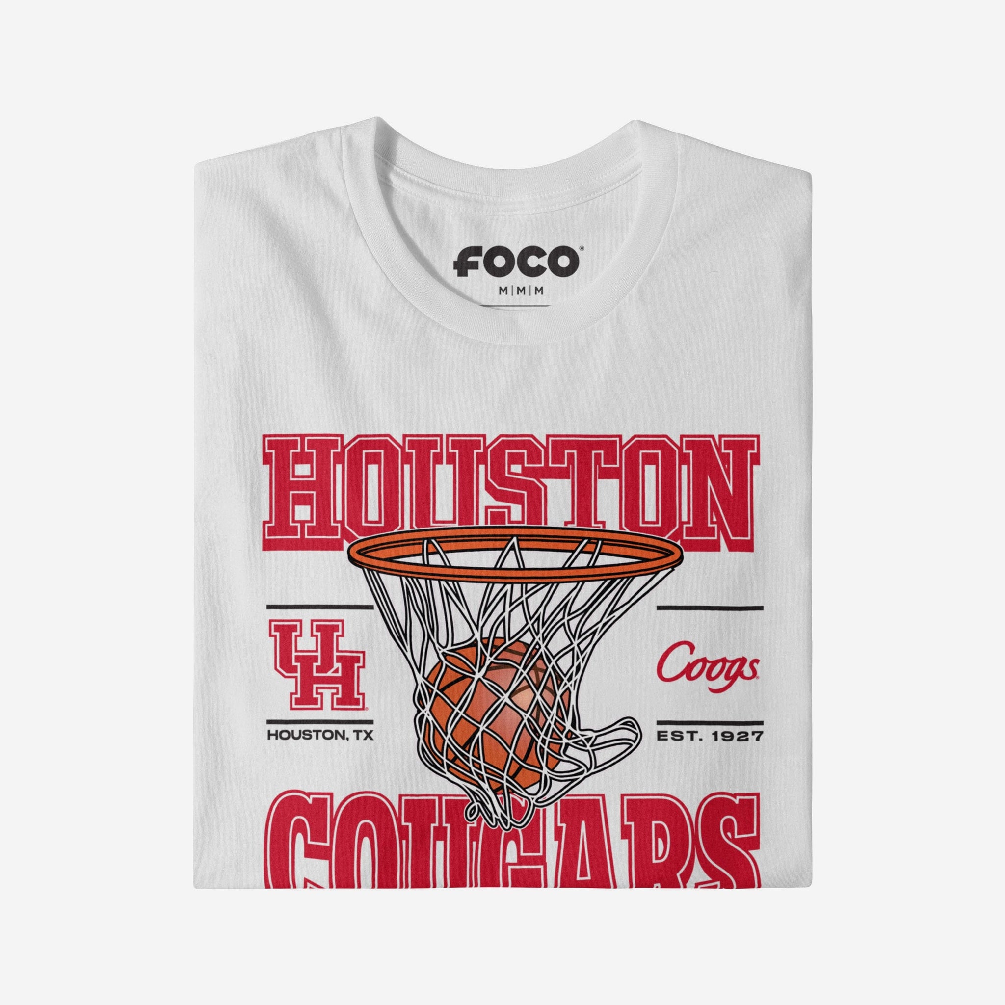 This top features a design that showcases your all-important team colors, a team logo display, a team wordmark name display, year of team establishment, and a basketball swishing through a net display meaning this t-shirt will prove your unmatched dedication to the Houston Cougars when you're at the game or watching at home. In other words, this graphic tee is about to be your new favorite teammate.
