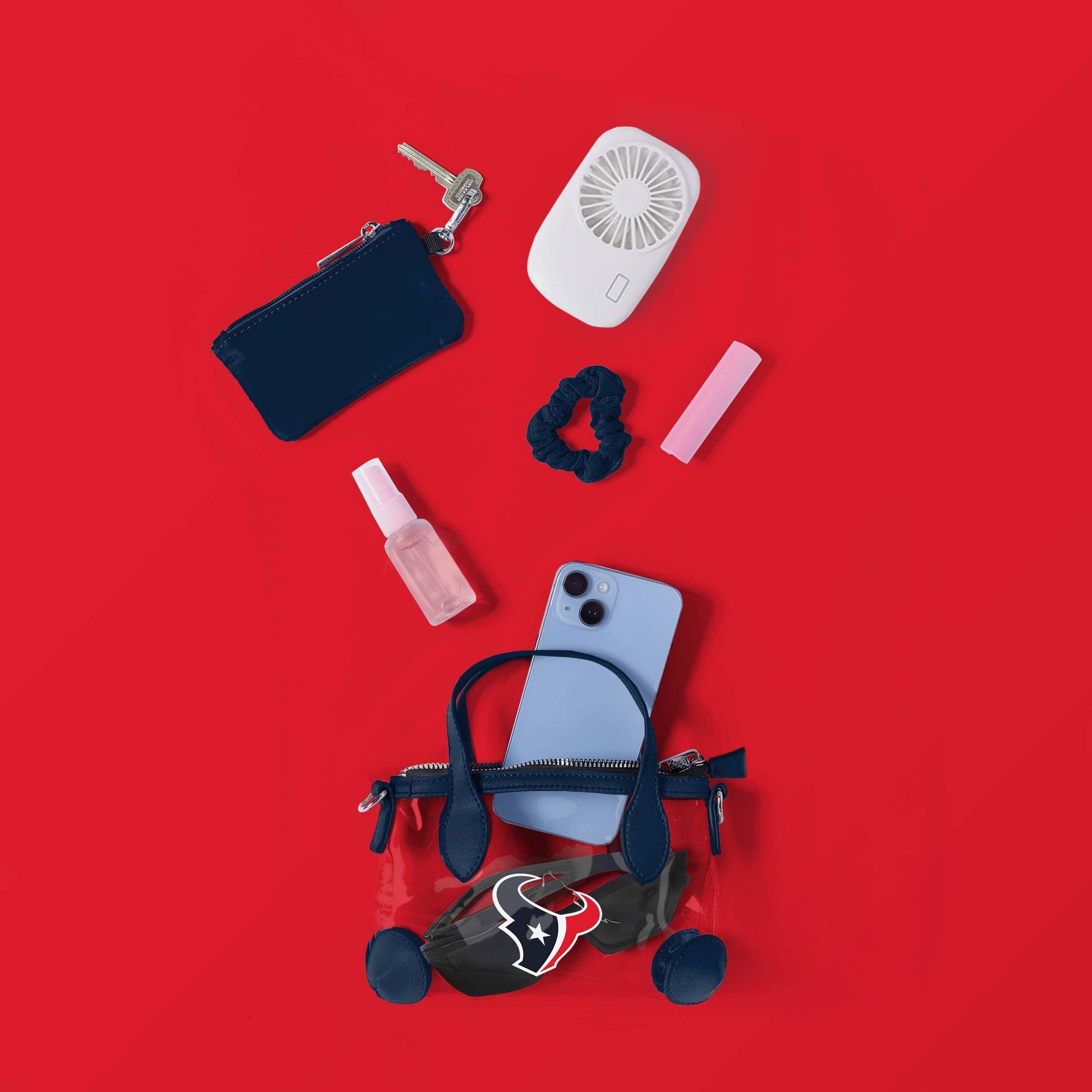 It's clear to see. Whether you've got it slung across your shoulder or held in your hands, this Houston Texans Big Logo Clear Crossbody Mini Purse is the perfect accessory for displaying your fandom and keeping your stuff secure at the game.