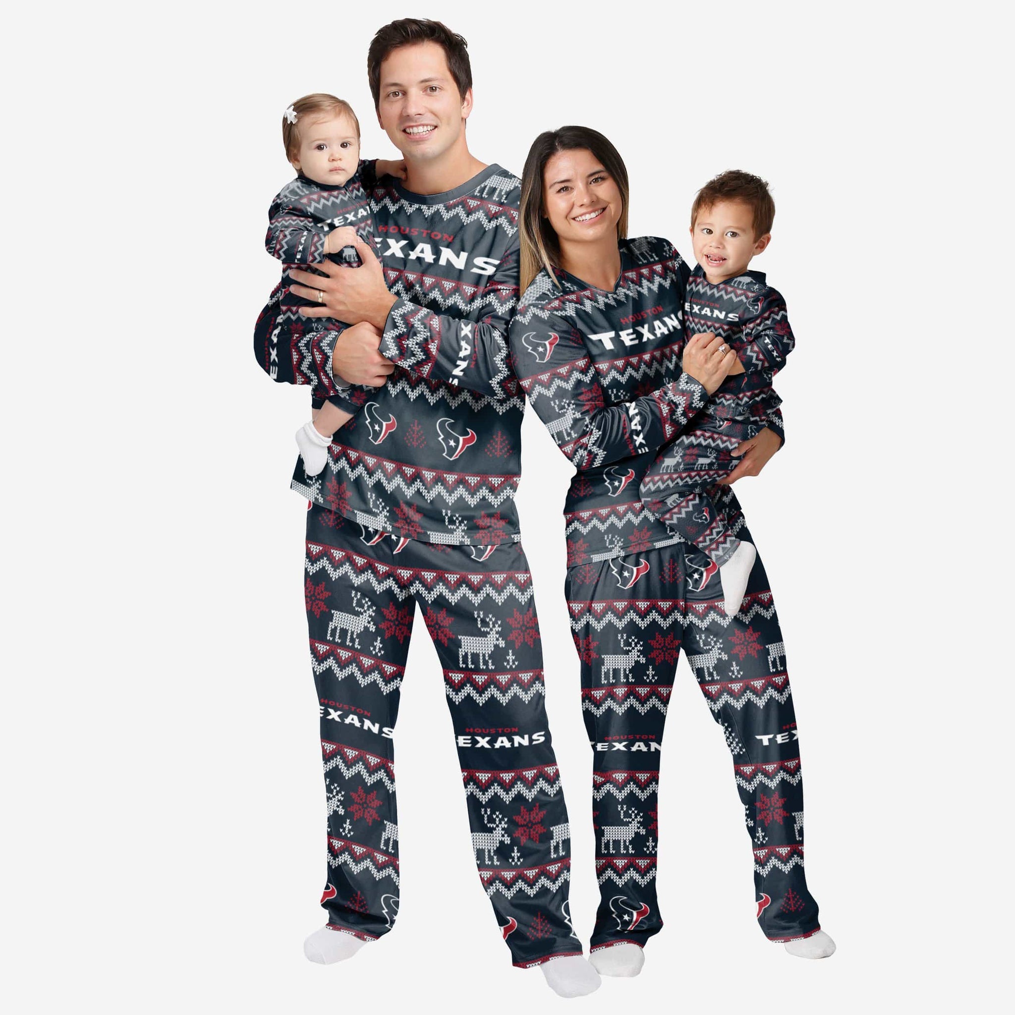 Get your young fan started early this holiday season in these Houston Texans Infant Ugly Pattern Family Holiday Pajamas! Your baby will absolutely love these matching Christmas pajamas! Make sure your infant enjoys sweet dreams filled with holiday joy by having them sleep in infant pajamas. Don’t forget to take your holiday photo with the whole family wearing matching Christmas pajamas!