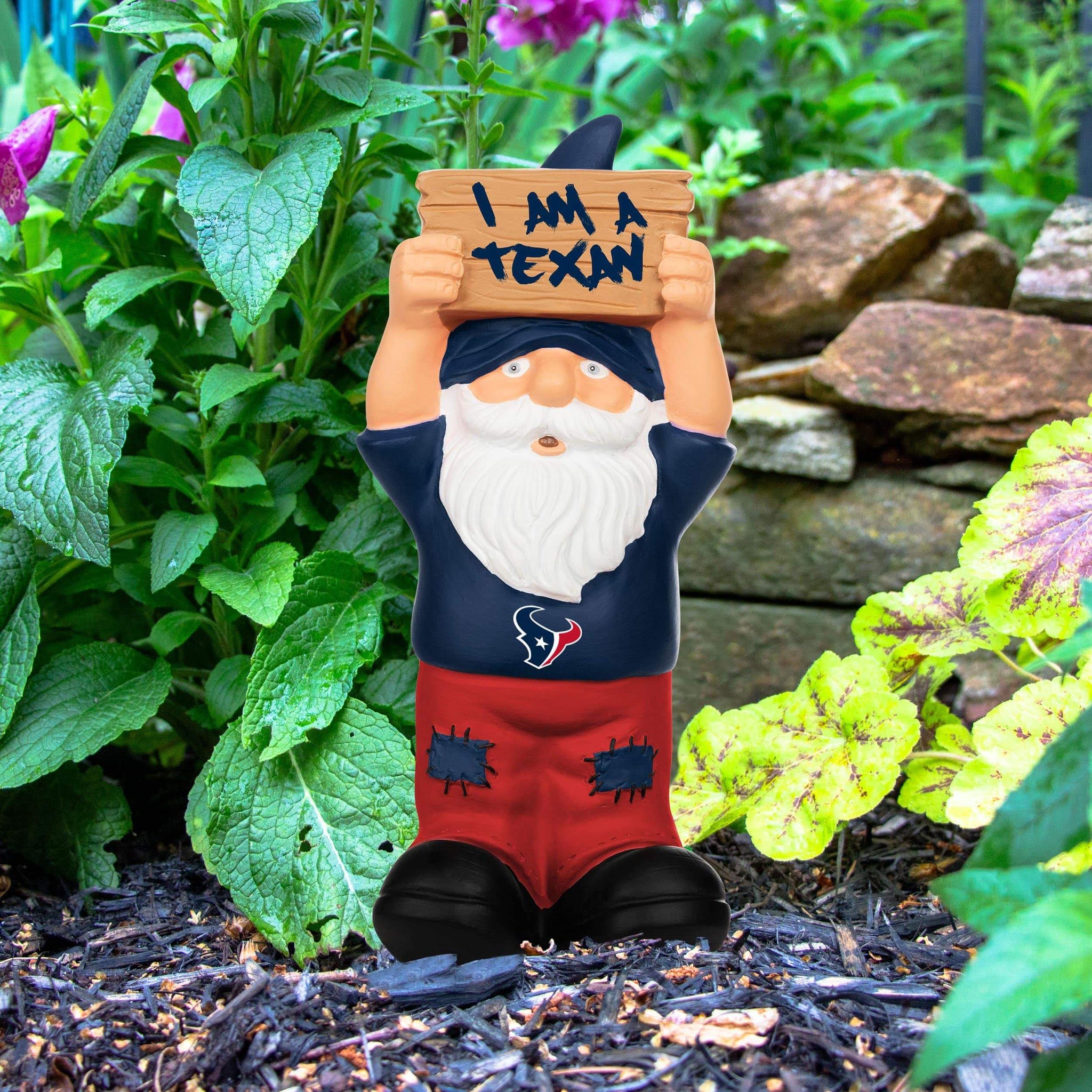 Green grass. Beautiful flowers. Fresh fruits and veggies. Your garden has all the essentials. Well, most of them. Can't forget your fandom. Just add this Houston Texans Slogan Sign Mini Gnome to your garden's lineup and you'll be good to go.