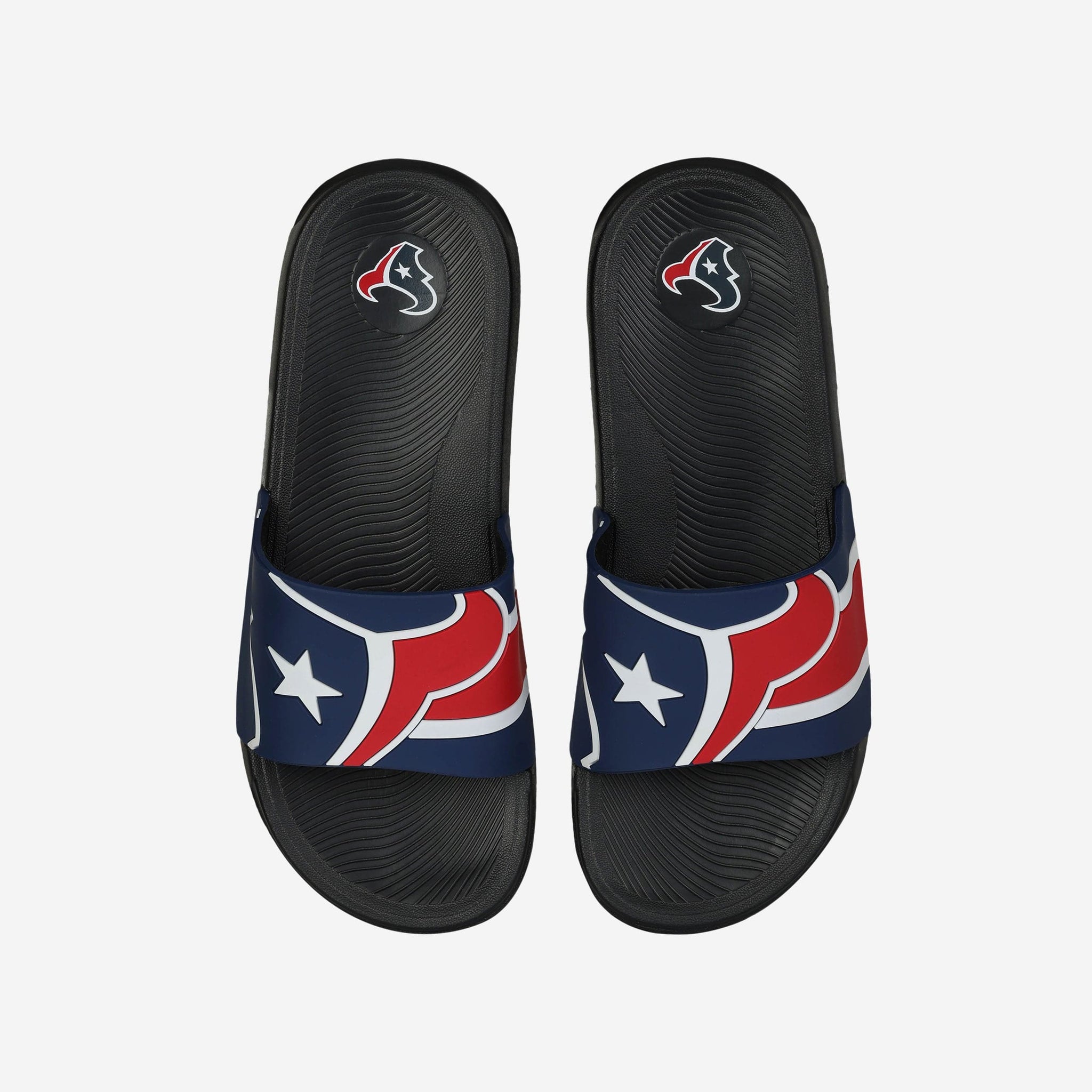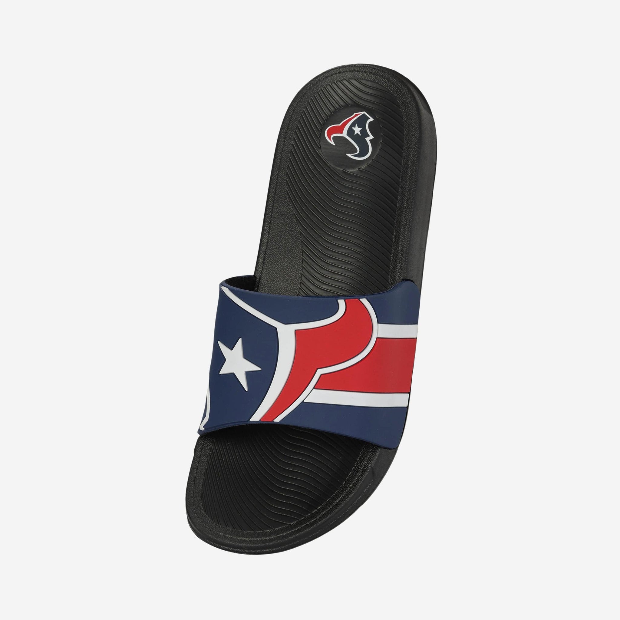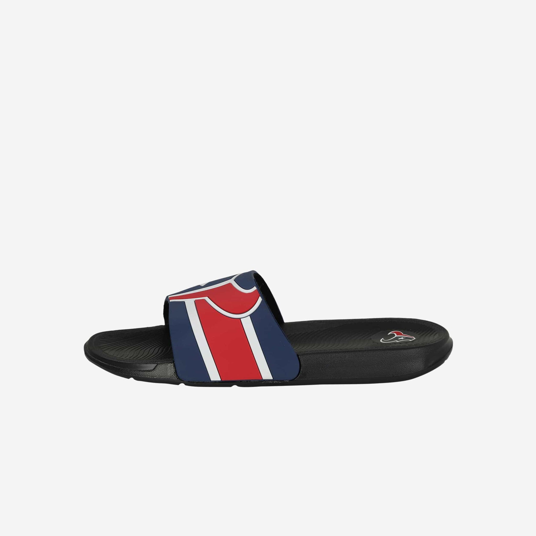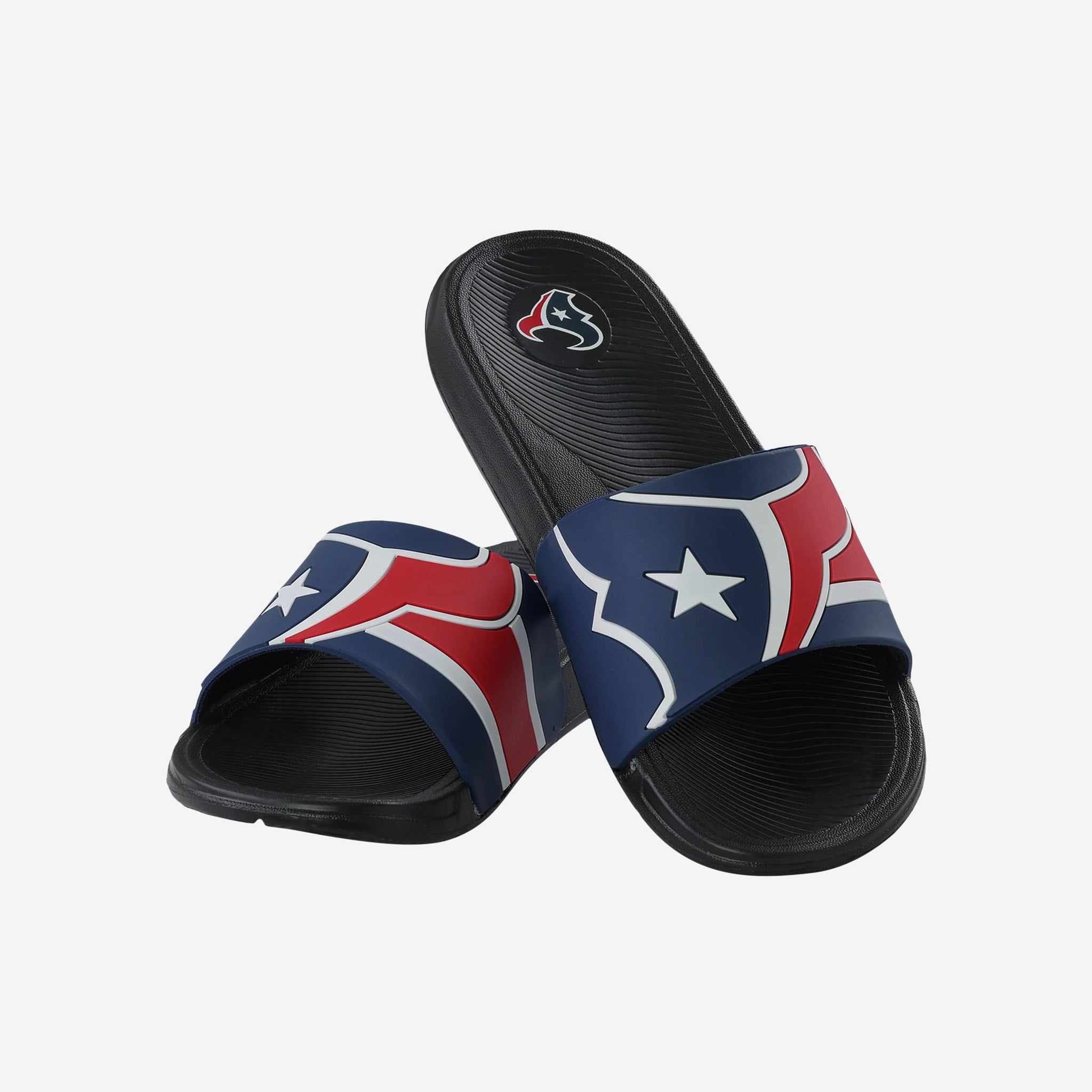 These Houston Texans Striped Big Logo Raised Slides give a whole new meaning to the idea of putting some pep in your step.