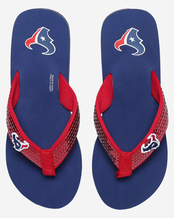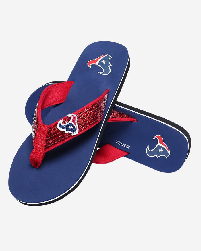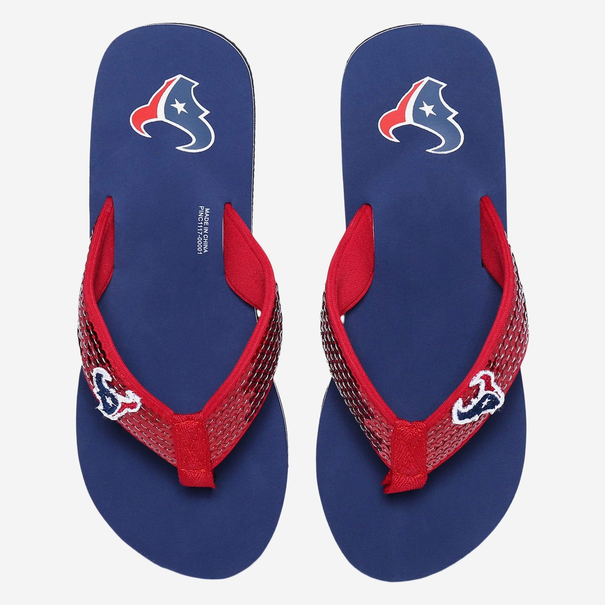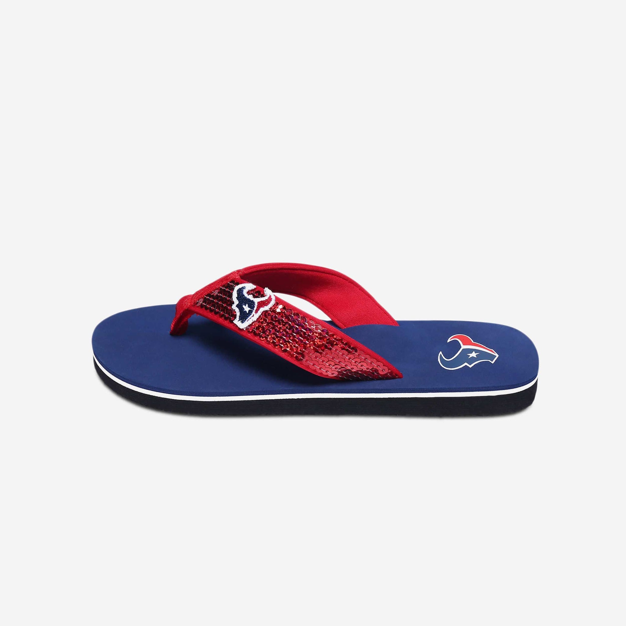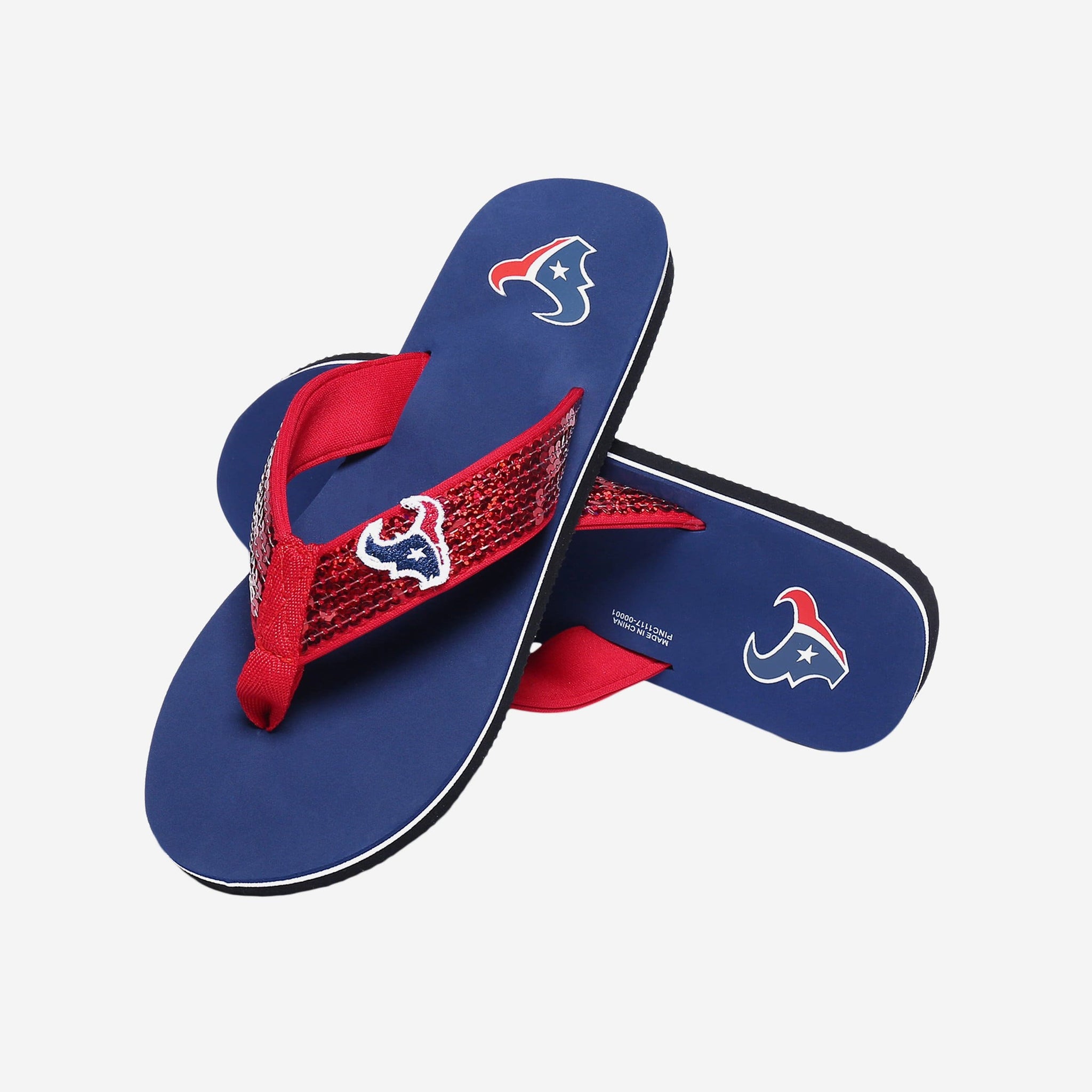 Nothing comes close to shining as bright as your team spirit. Well, nothing other than these Houston Texans Womens Sequin Flip Flops. Rock your fandom in comfort and style. Just don't be surprised when people need sunglasses when they look at you.
