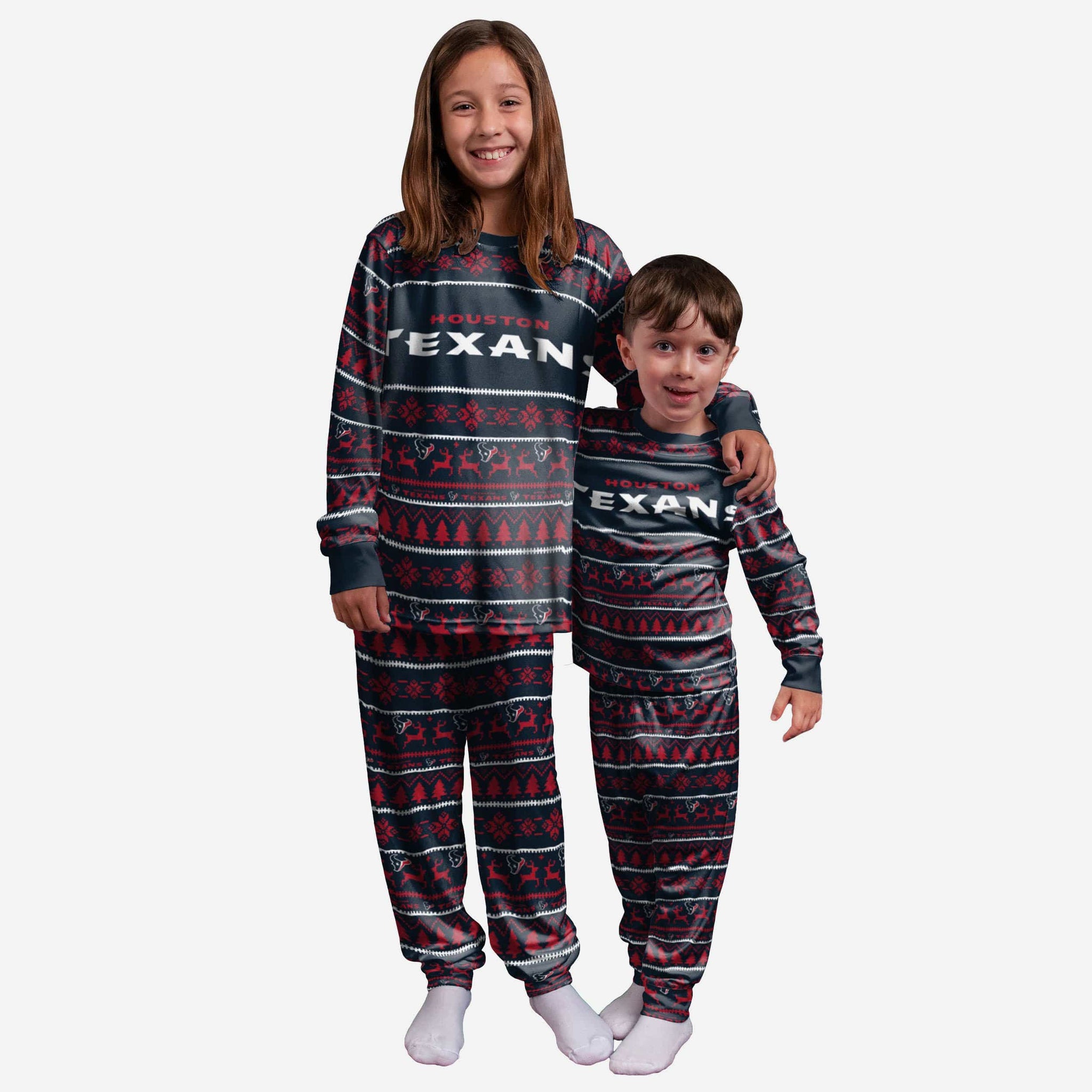 Get some matching family pajamas to turn your good night's sleep into a great night's sleep. You won't want to miss these kids' team pajamas. These youth PJ's are comfortable and show off your team spirit in the form of some sweet youth jammies. Introducing Houston Texans Youth Family Holiday Pajamas. Don't forget to take your holiday photo with the family wearing matching Christmas pajamas.