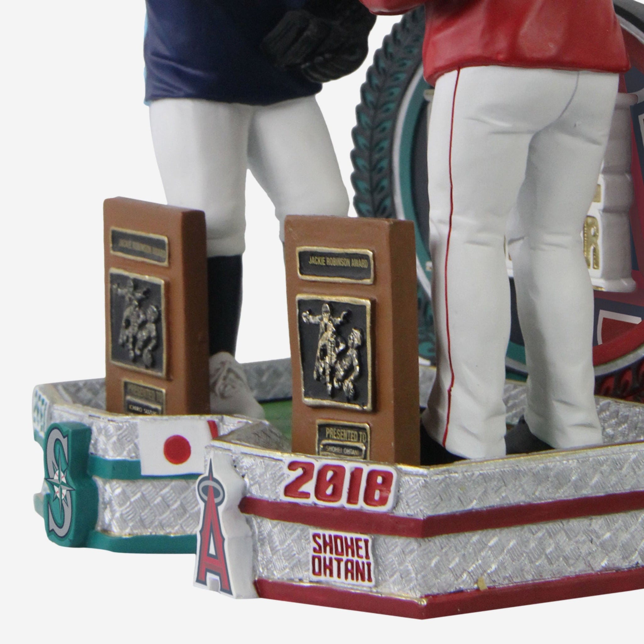 - Miniature 2001 and 2018 AL Rookie of the Year award accents on top of base to immortalize greatness that transcends decades