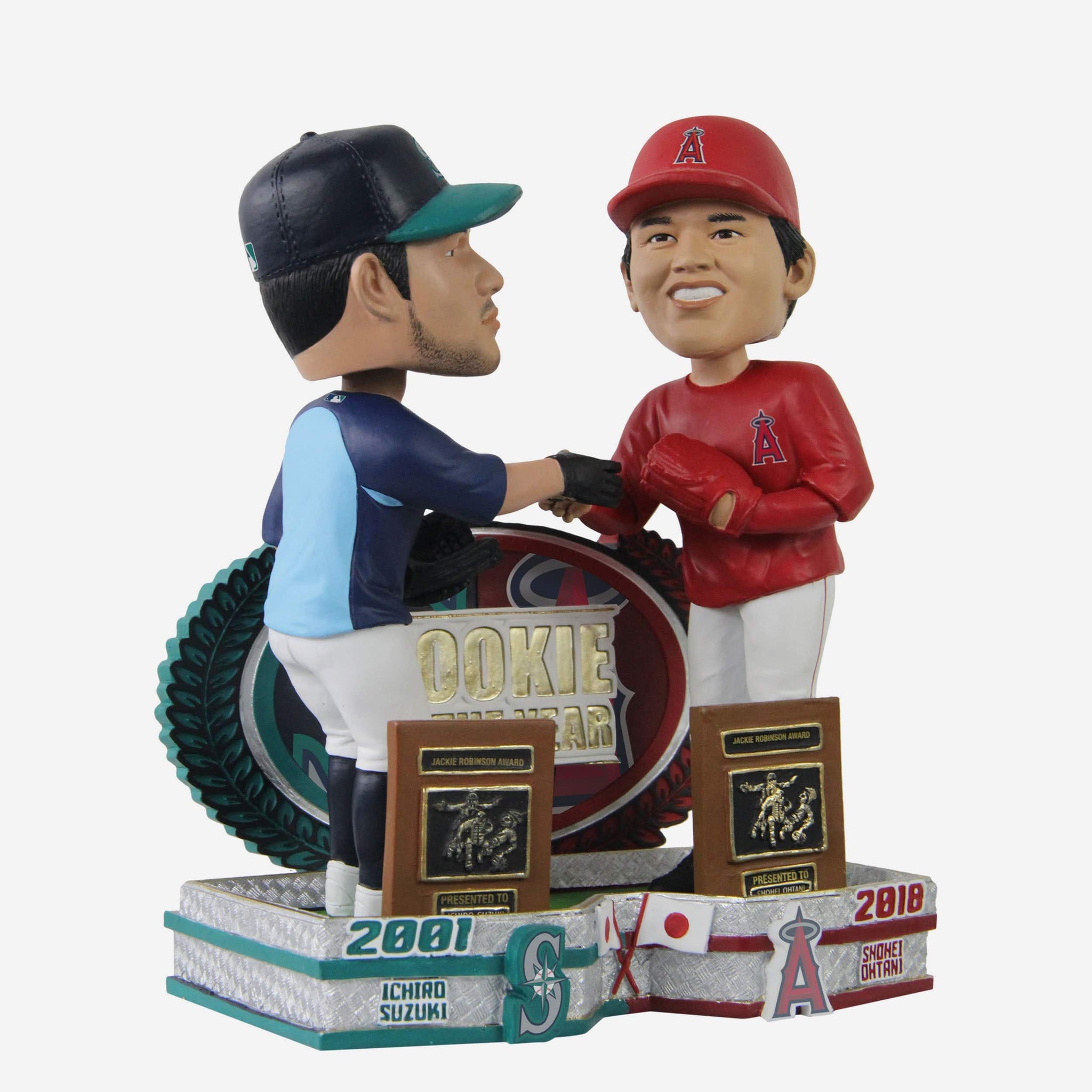 These two took "rookie sensation" to a whole new level. Pair up two greats that transcend decades with the Ichiro Suzuki & Shohei Ohtani Seattle Mariners & Los Angeles Angels 2001 & 2018 AL Rookie of the Year Bobblemate Dual Bobblehead.
