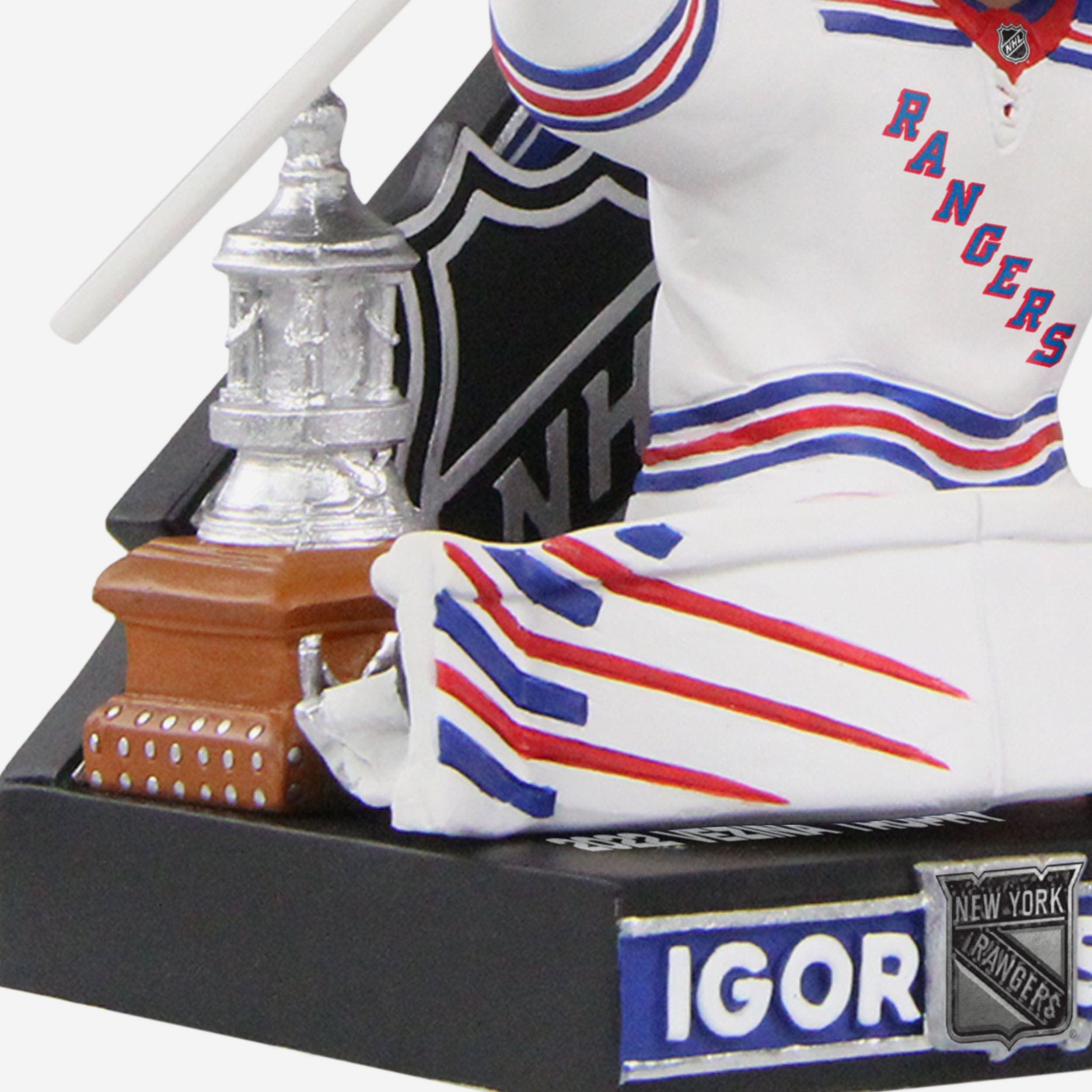 A message to opposing hockey pucks: You. Shall. Not. Pass. Celebrate Shesty's spectacular year in the net with this Igor Shesterkin New York Rangers 2022 Vezina Trophy Award Bobblehead.