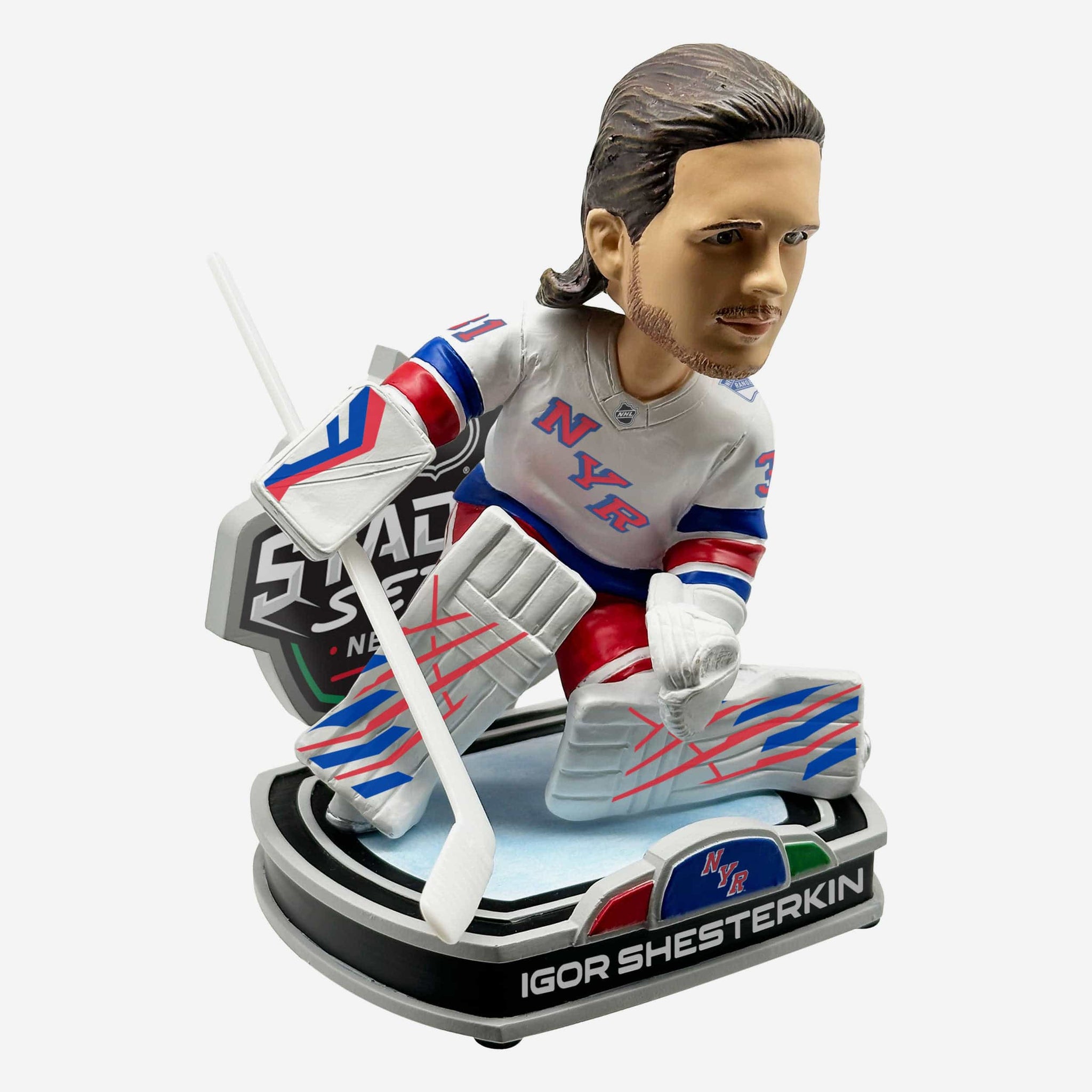 Shesty's stopping pucks outdoors now too! Give your fancave that Stadium Series feel with an Igor Shesterkin New York Rangers 2024 Stadium Series Bobblehead.