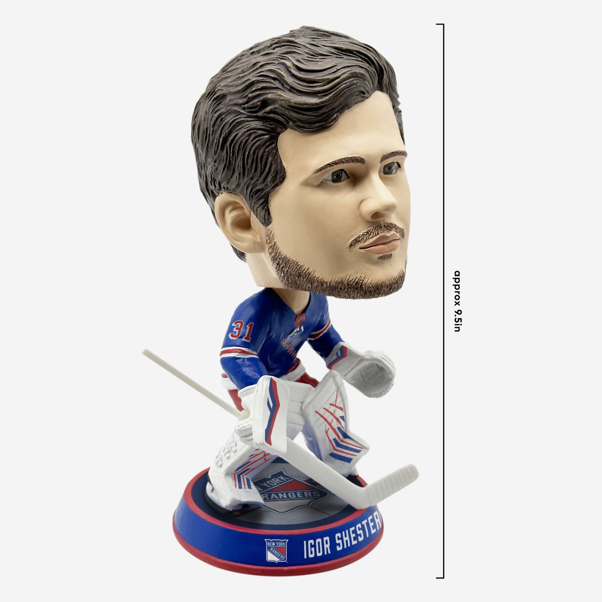 Shesty has one goal: Stop. All. Pucks. When people see the Igor Shesterkin New York Rangers Ice Stripe Bighead Bobblehead in your fancave, they’ll know nothing gets through!