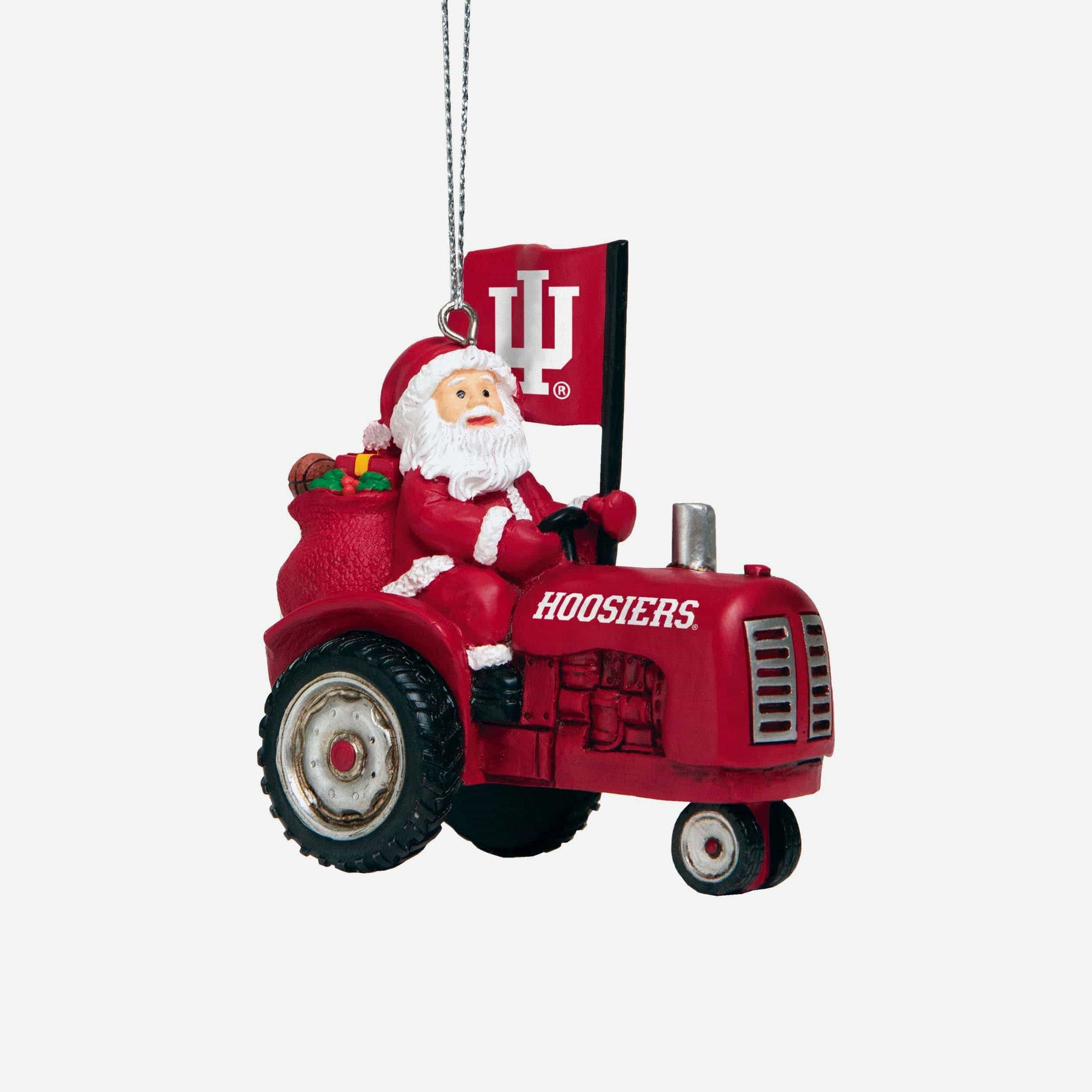 Tired: Santa riding a sleigh. Wired: Santa riding a tractor! Santa's got a fresh crop of goodies coming your way with this Indiana Hoosiers Santa Riding Tractor Ornament!