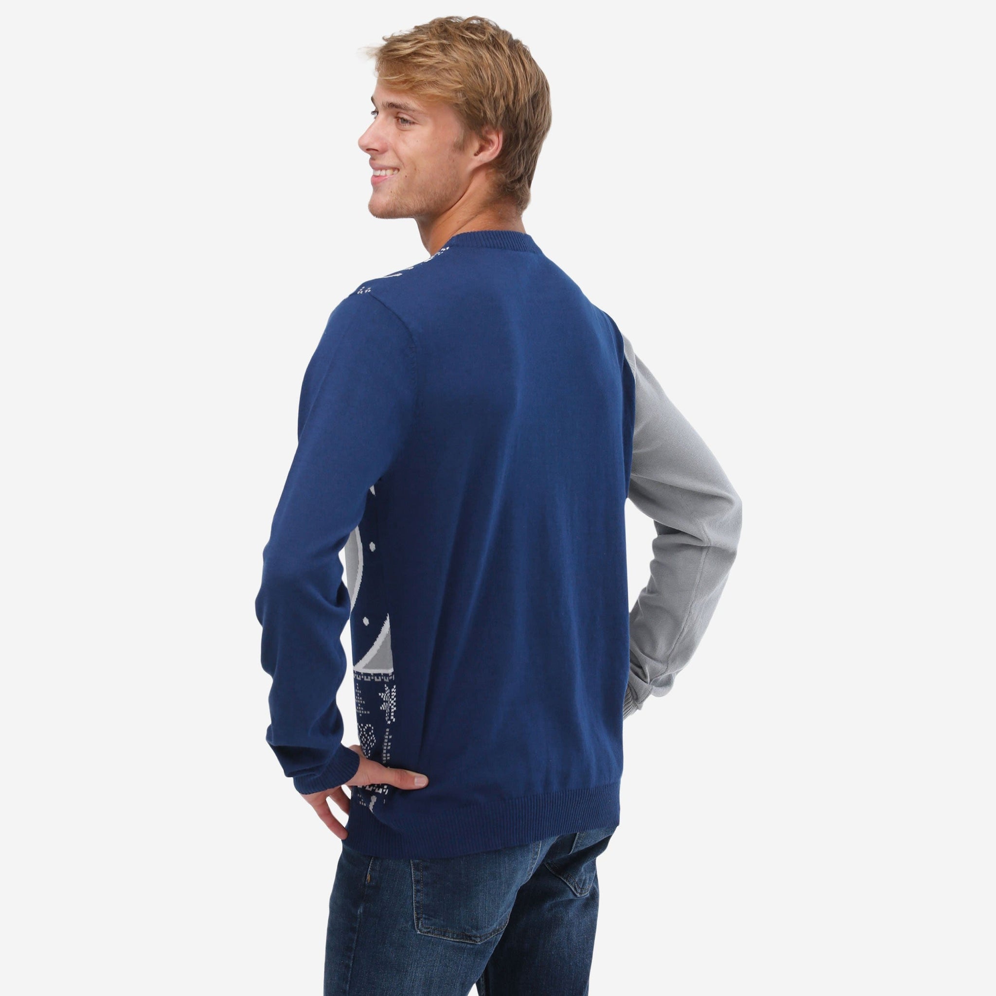 - Team-colored snowflake and tree accents throughout that will have you feeling like you're walking through a winter wonderland in this holiday sweater