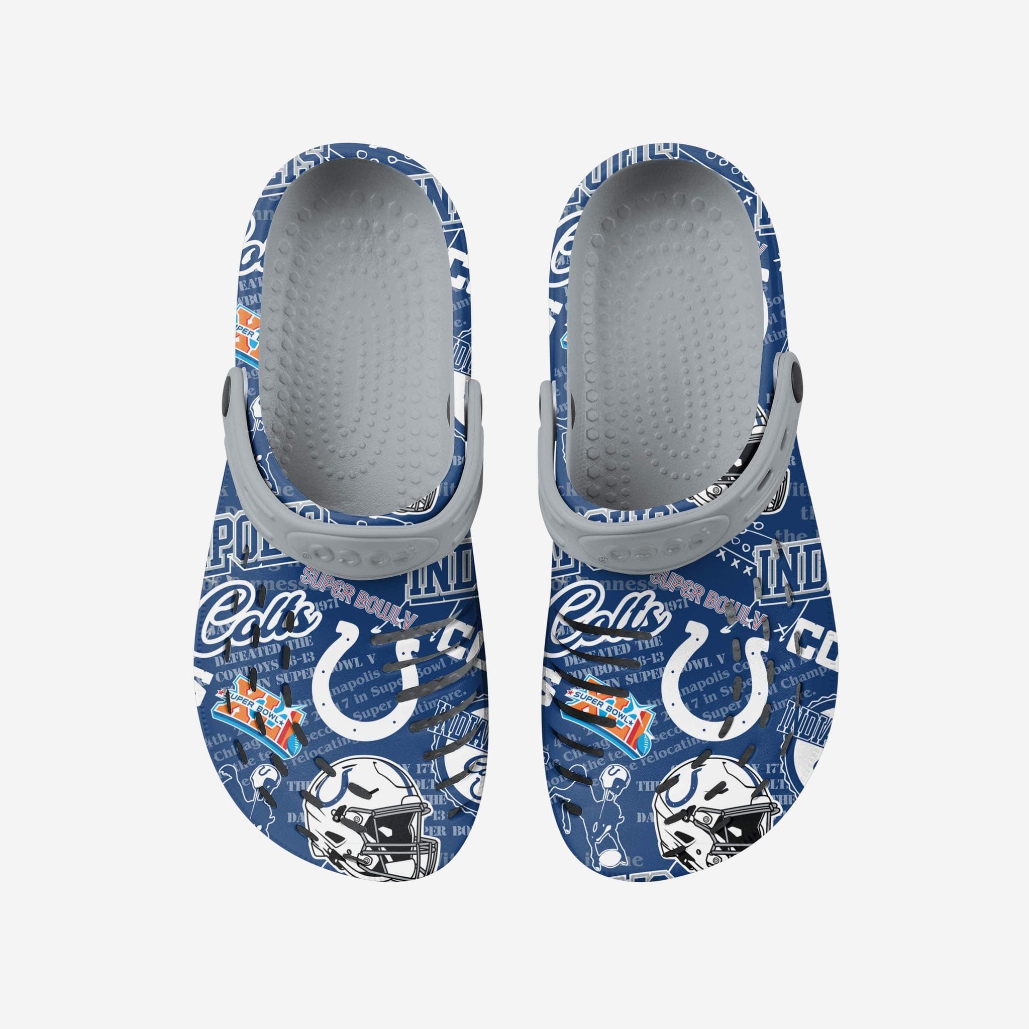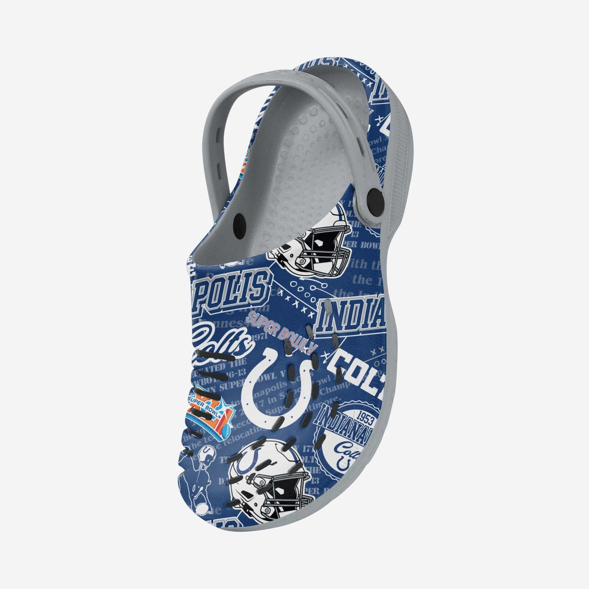 The Indianapolis Colts Historic Print Clogs with Straps are here to help you take a step into the time machine and celebrate your franchise's glorious history.